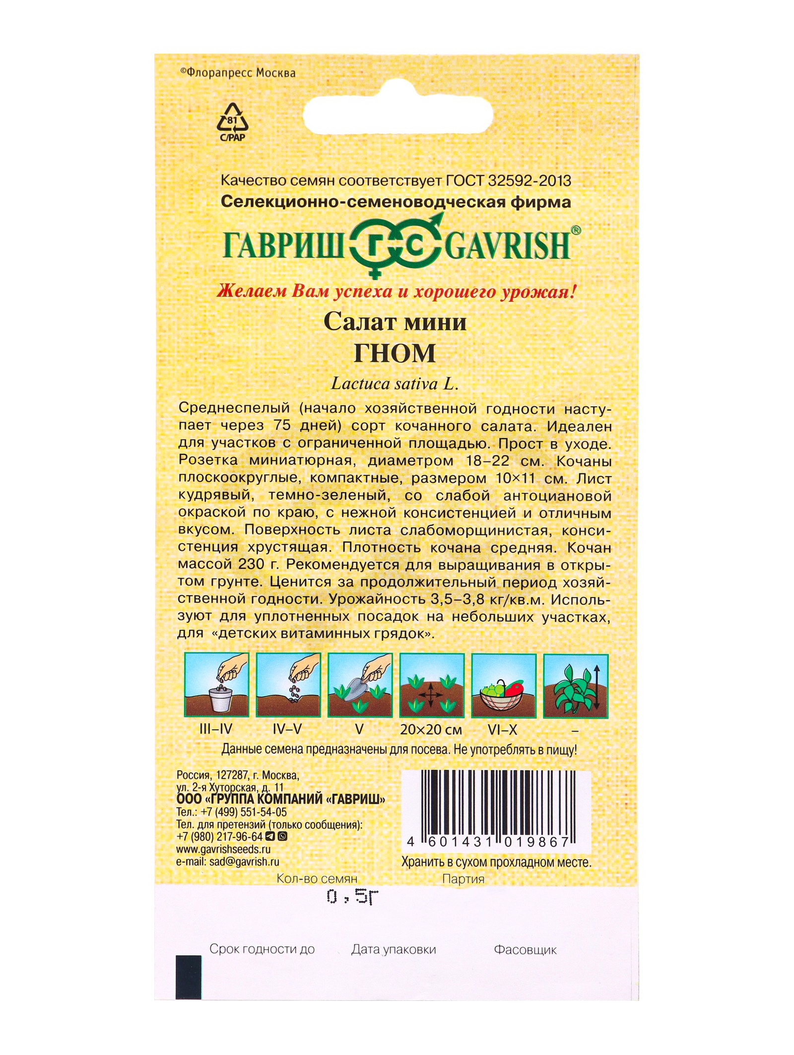 Семена Салат Гном 0.5 г автор. мини, кудрявый, хрустящий,темно-зеленый, Гавриш, Россия