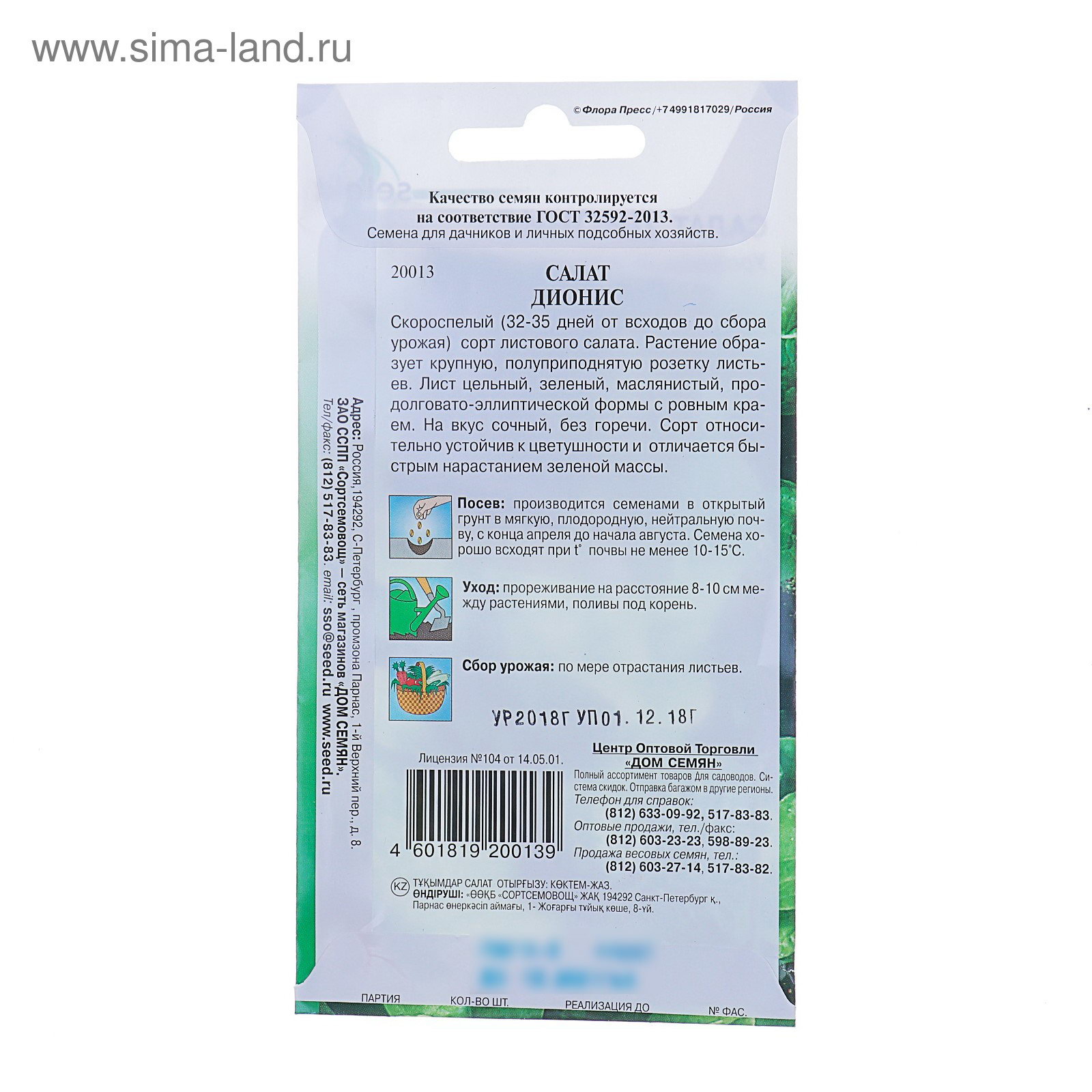 Семена Салат "Дионис" 440шт, 8x15x0.3 см., Дом семян, Россия