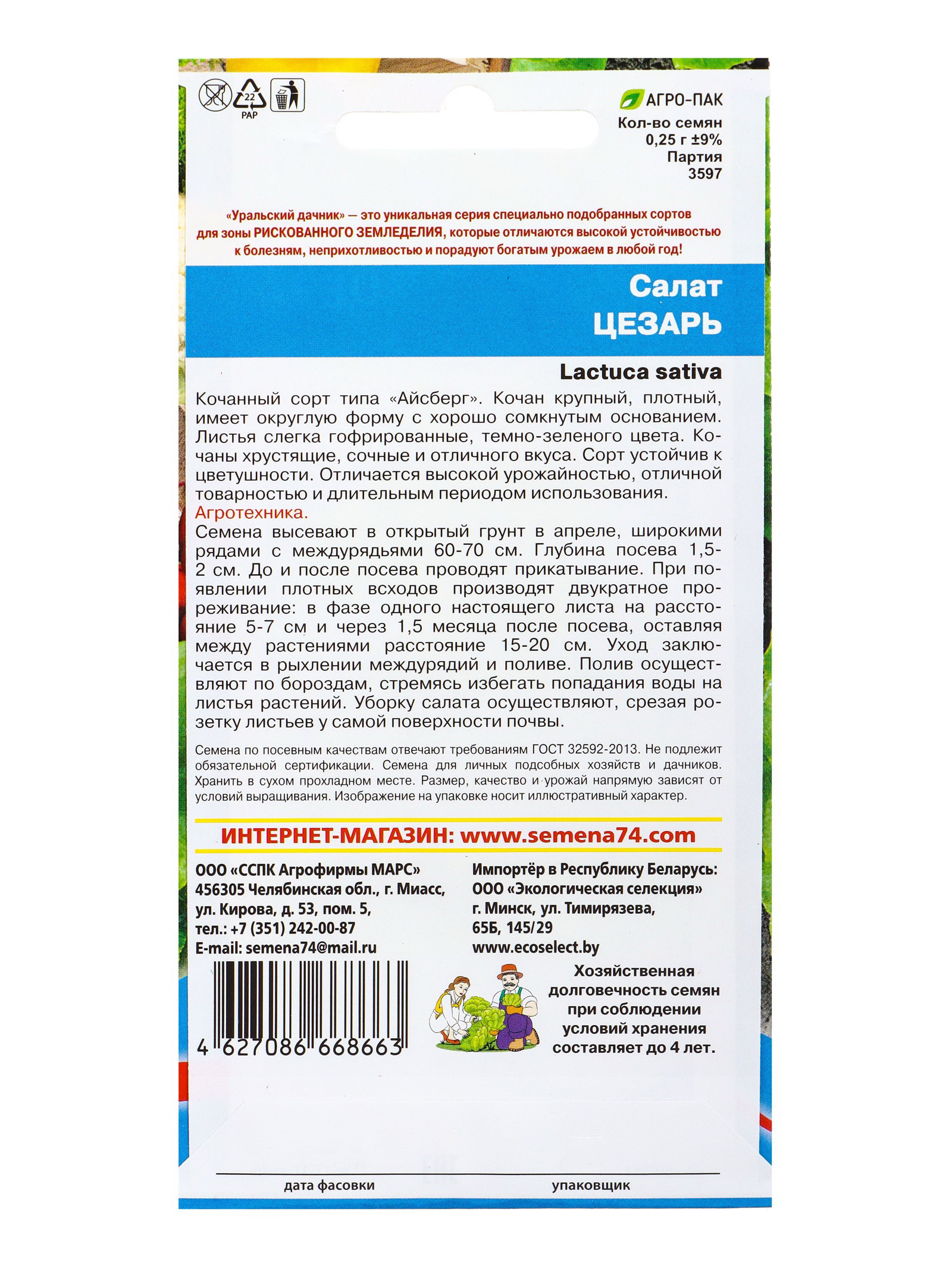Семена Салат Цезарь, Уральский Дачник, Россия