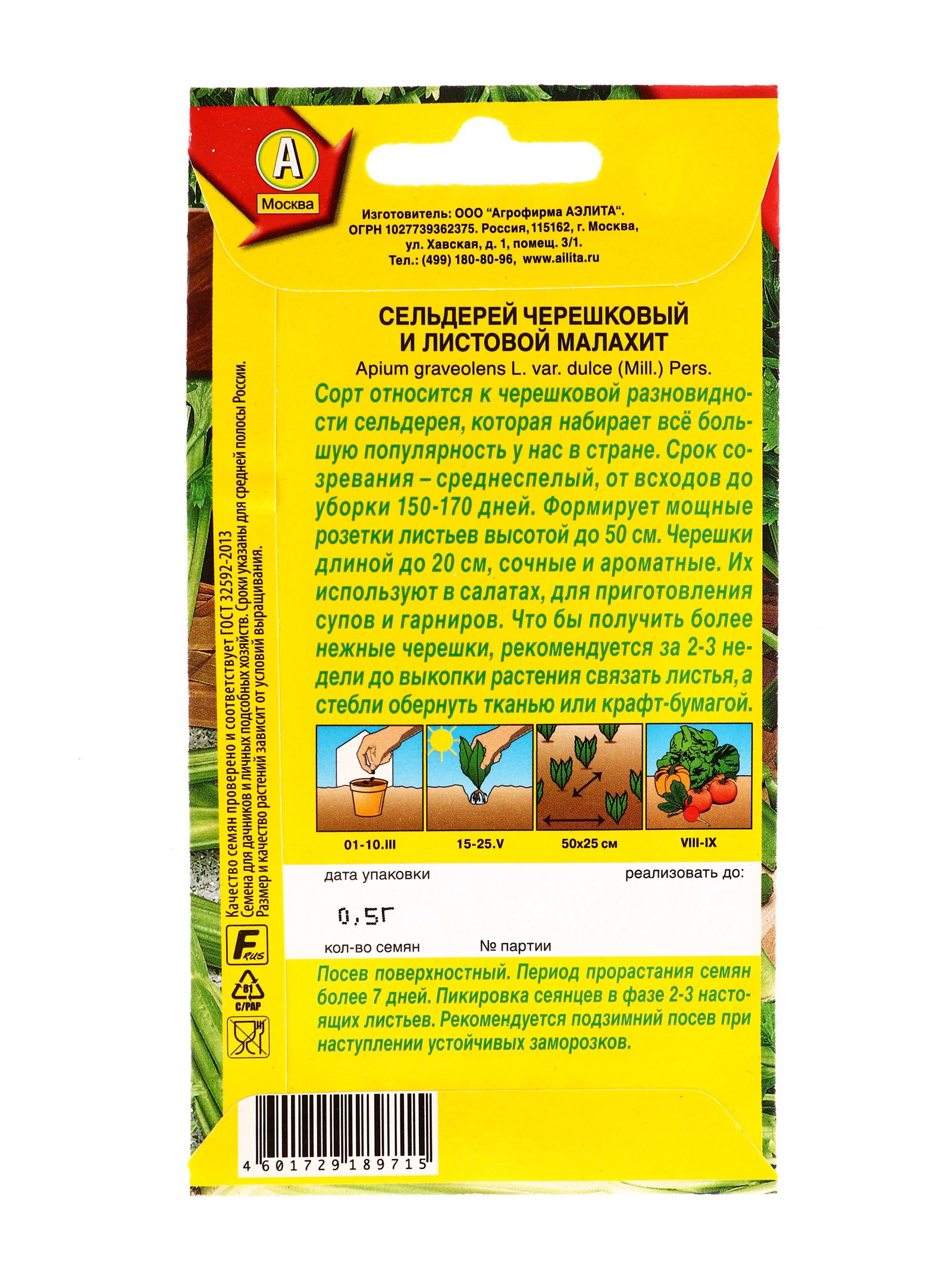 Семена Сельдерей черешковый "Малахит", 0.5 г, Агрофирма АЭЛИТА, Италия
