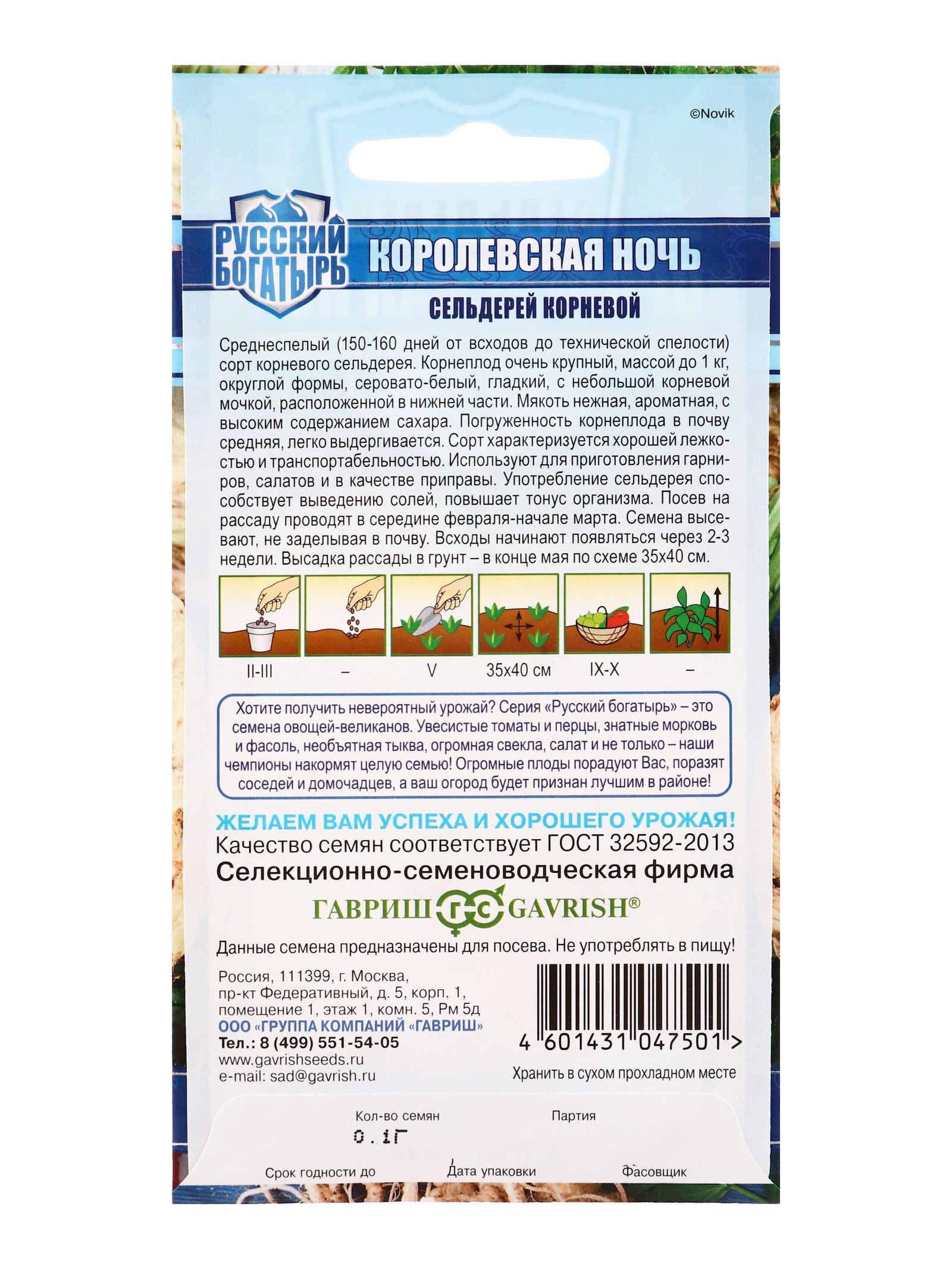 Семена Сельдерей корневой Королевская ночь 0.1 г сер. Русский богатырь, Гавриш, Россия