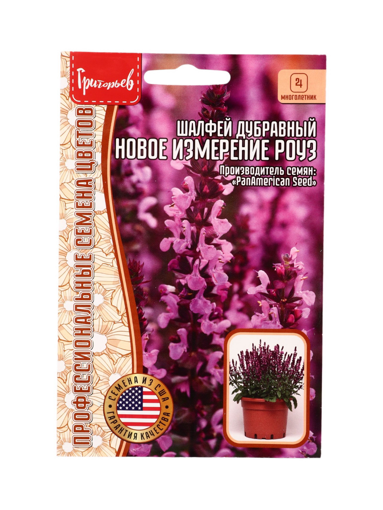 Семена Шалфей New Dimension Rose дубравный 5 шт. 12.29 гр, Григорьев, Россия