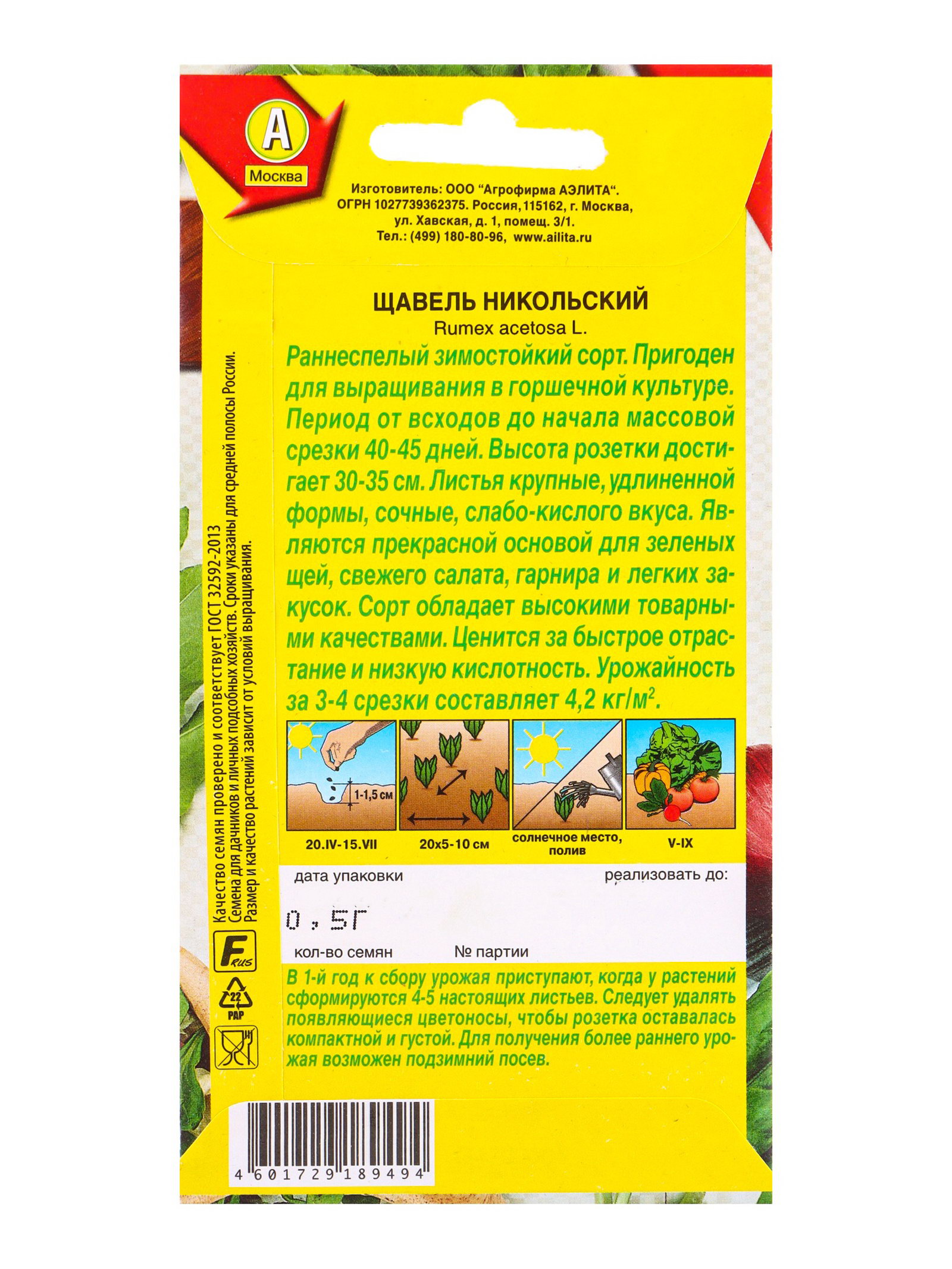 Семена Щавель Никольский, Ц/П,0.5 г, Агрофирма АЭЛИТА, Россия