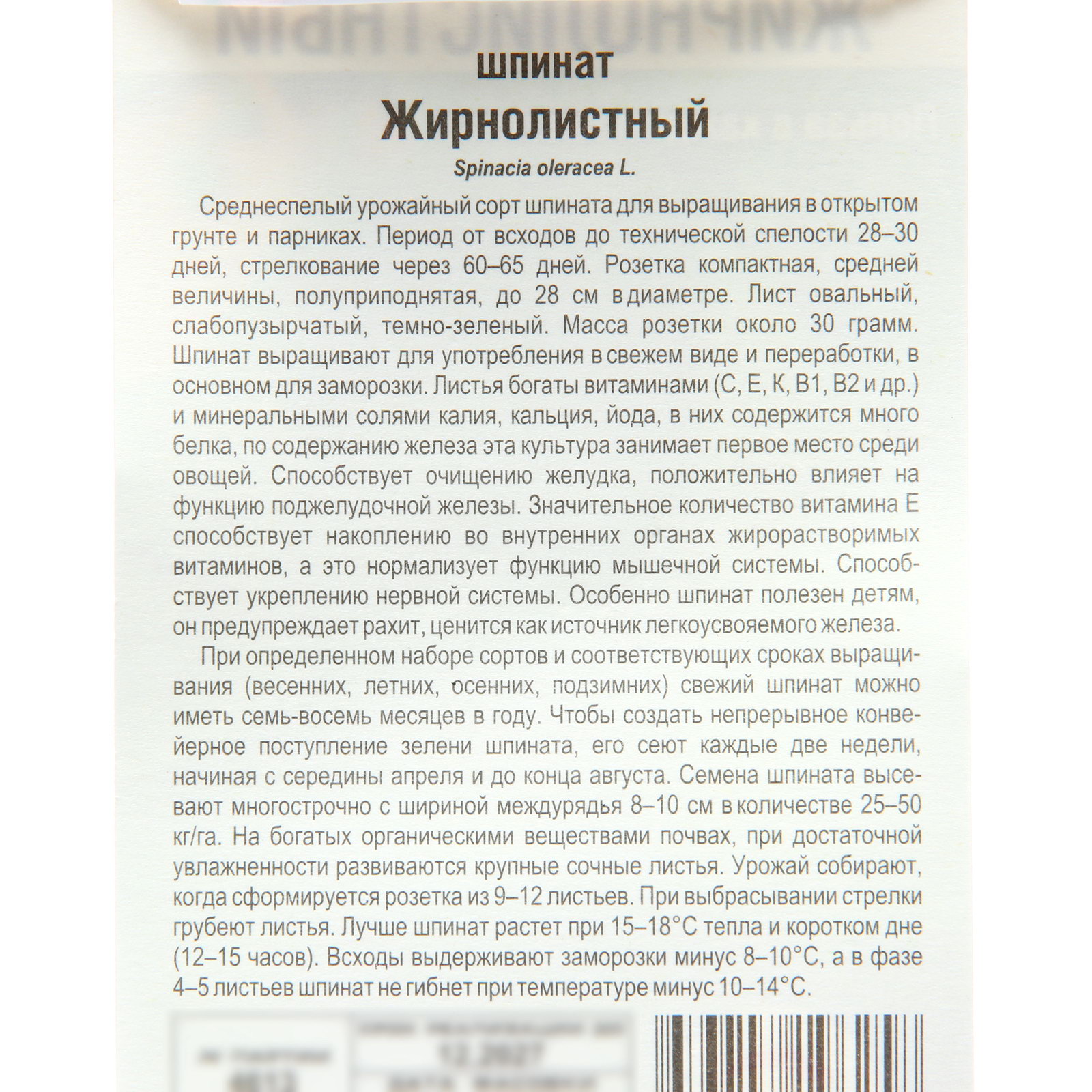 Семена Шпинат Жирнолистный, 1 г, Сибирский сад, Россия
