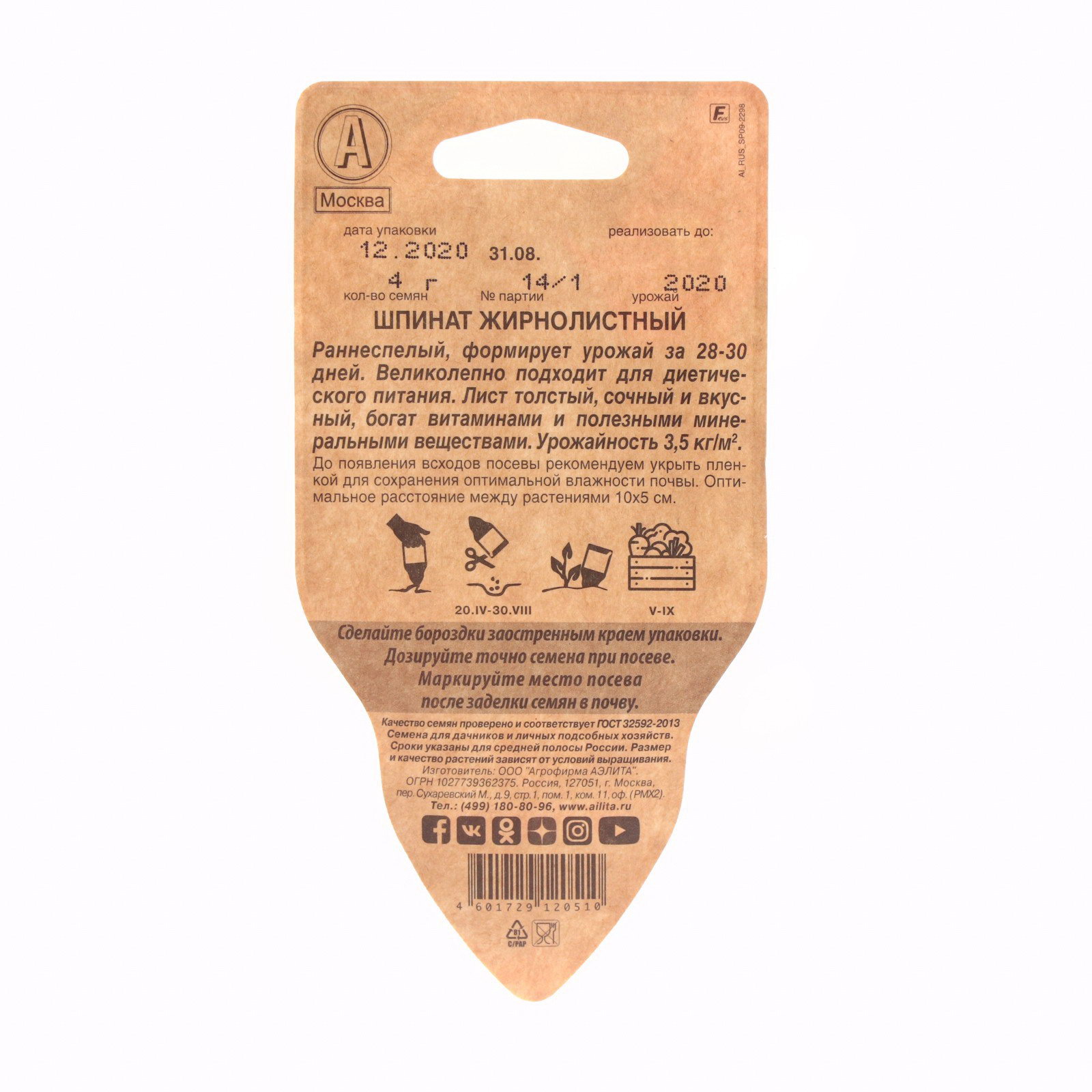 Семена Шпинат "Жирнолистный", сеялка, 4 г, Агрофирма АЭЛИТА, Италия