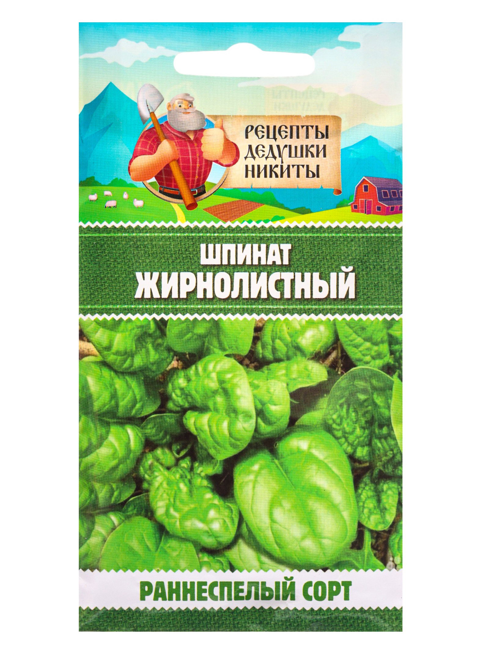 Семена шпинат "Жирнолистный", 3 г, 7x15x1 см., Рецепты дедушки Никиты, Россия