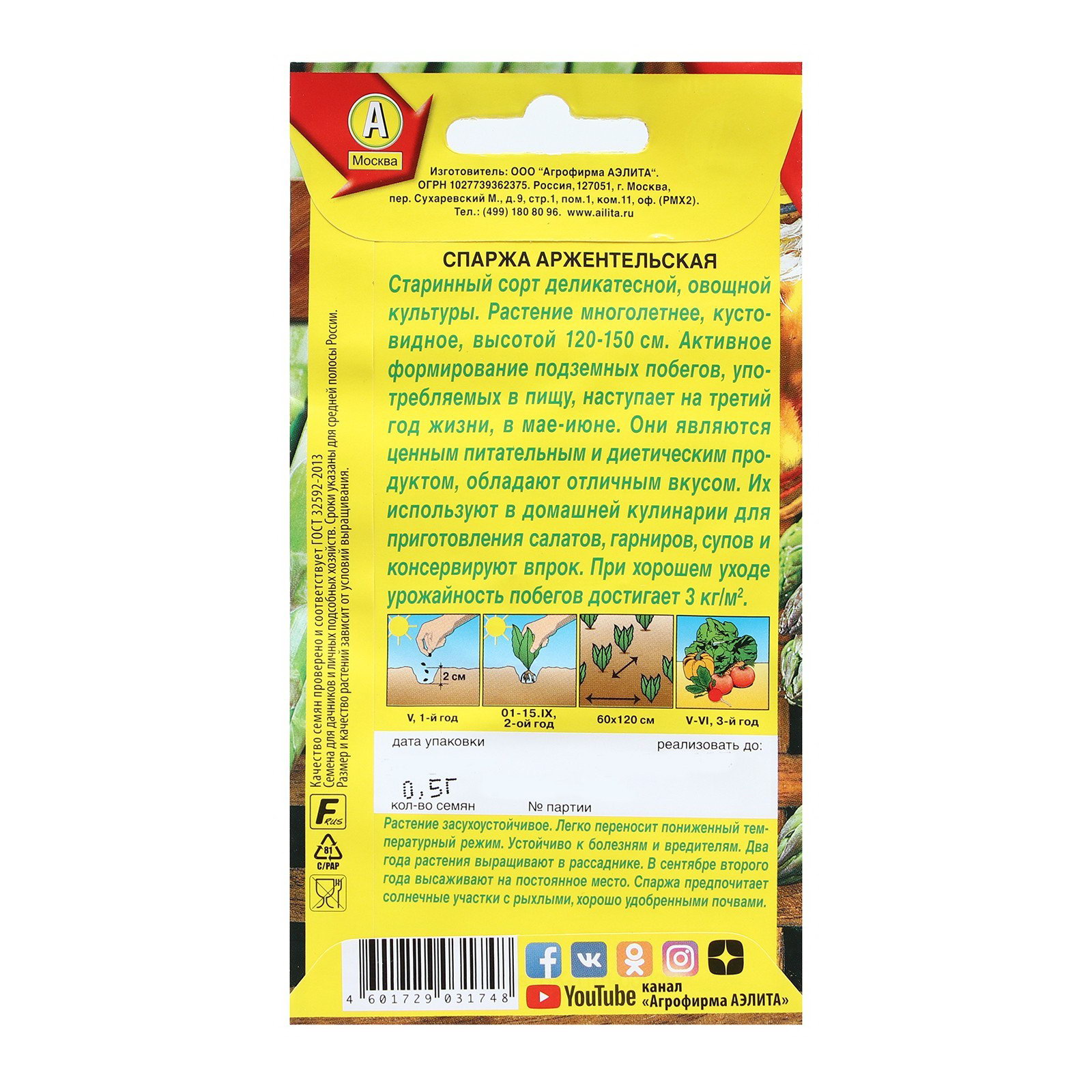 Семена Спаржа "Аржентельская", 0.5 г, Агрофирма АЭЛИТА, Нидерланды
