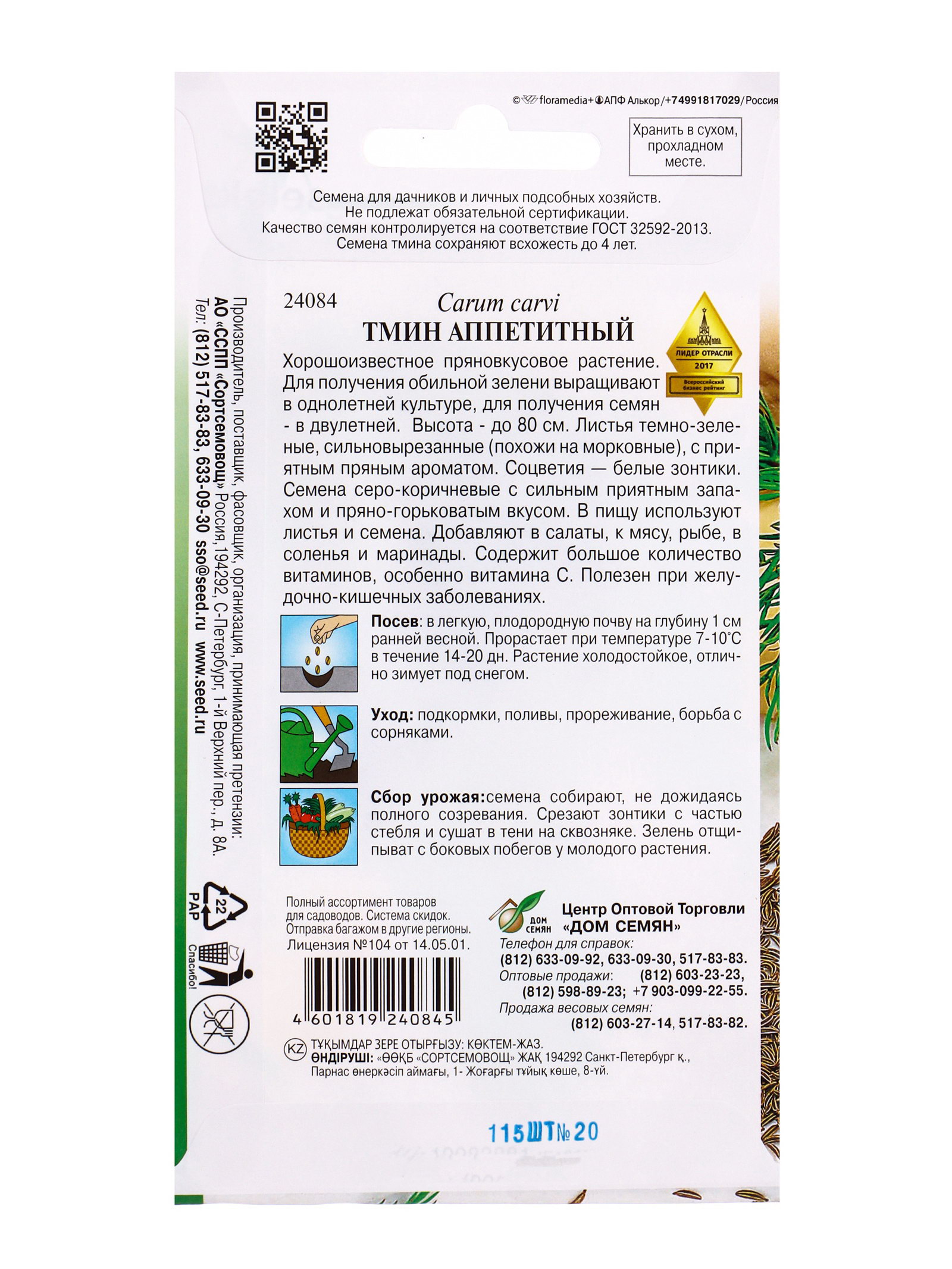 Семена Тмин Аппетитный 115 шт, Дом семян, Россия