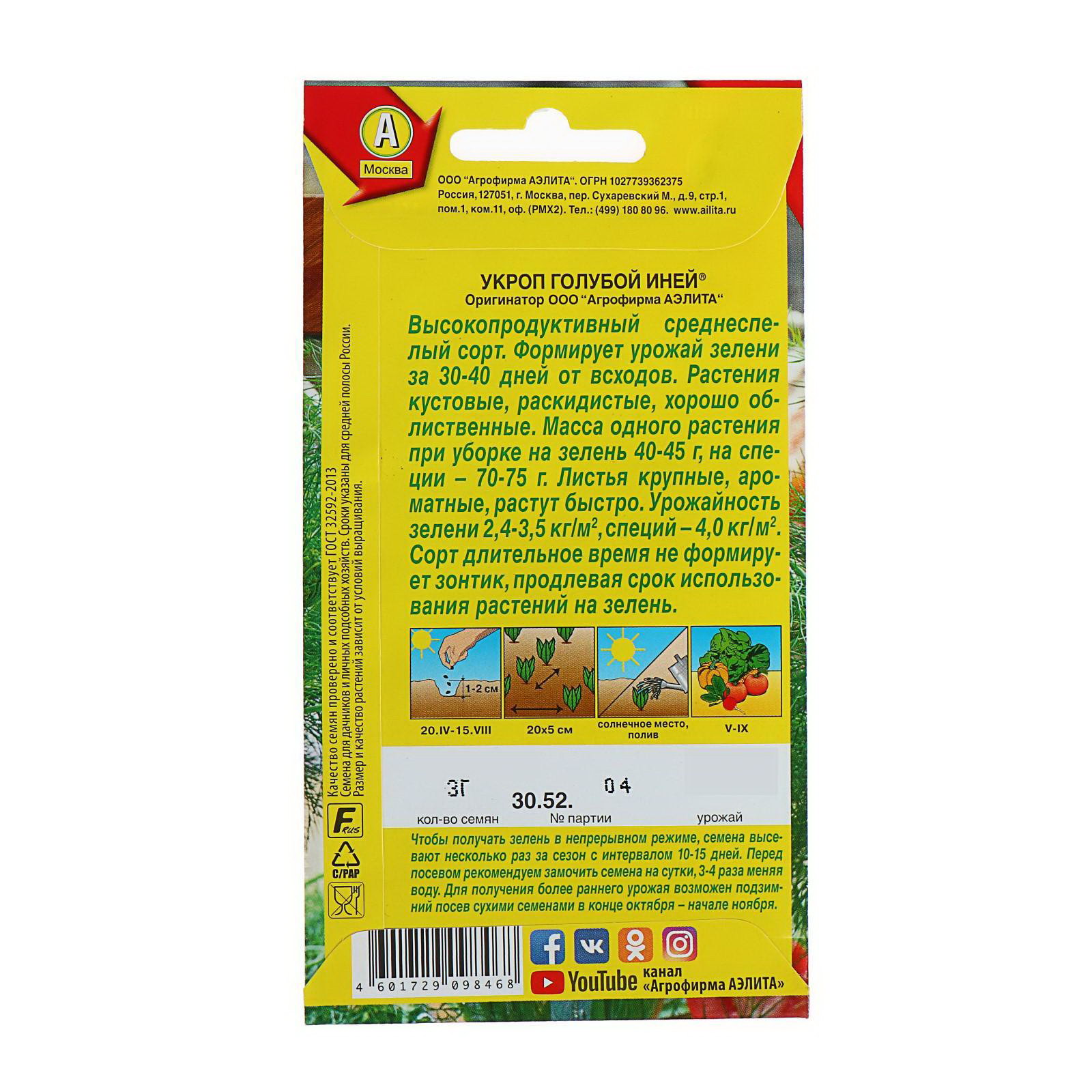 Семена Укроп "Голубой иней", 3 г, Агрофирма АЭЛИТА, Россия
