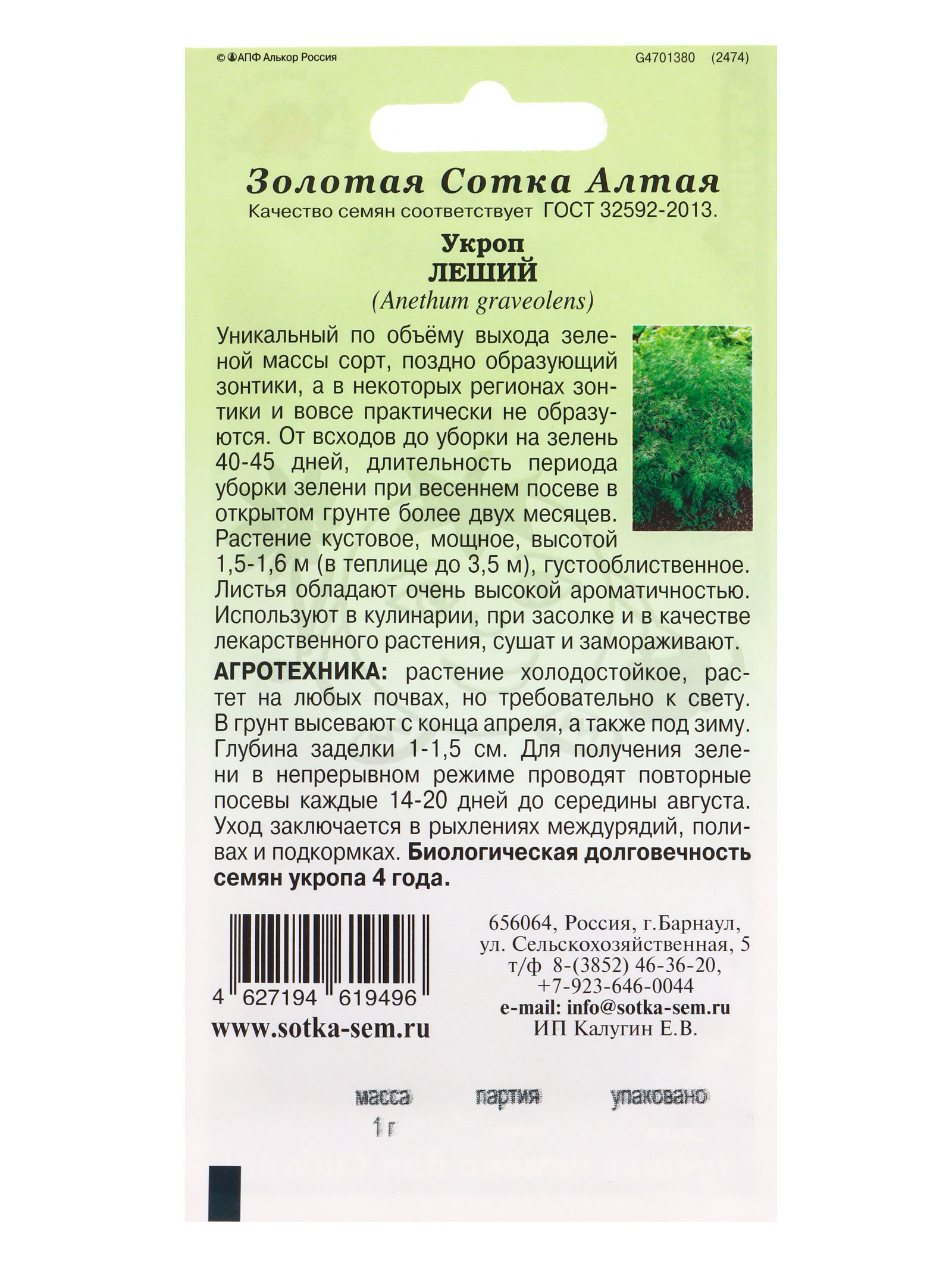 Семена Укроп Леший /Сотка/ 1г/*900, Золотая Сотка Алтая, Россия