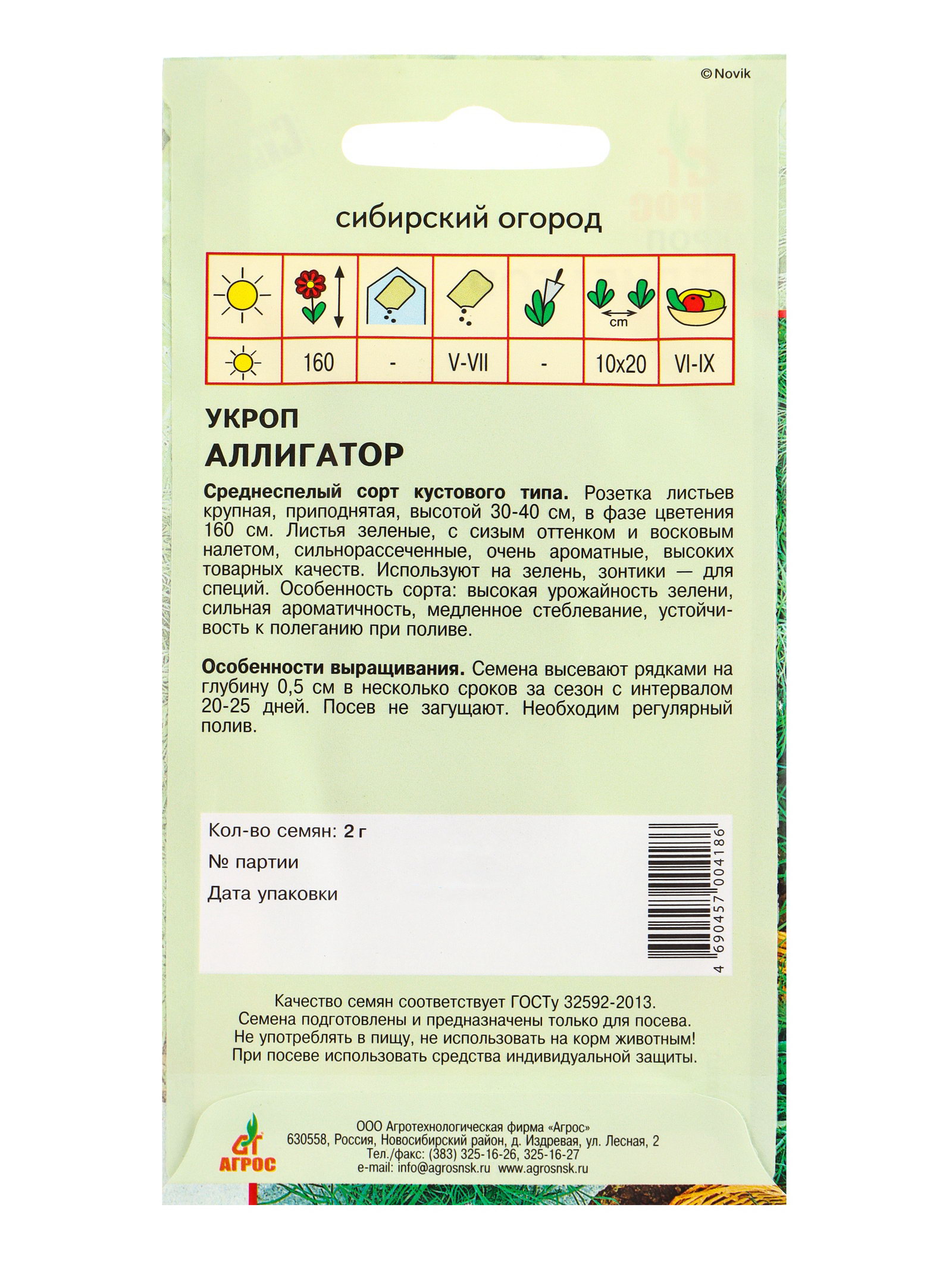 Семена Укроп "Аллигатор" 2 г, Агросс, Россия