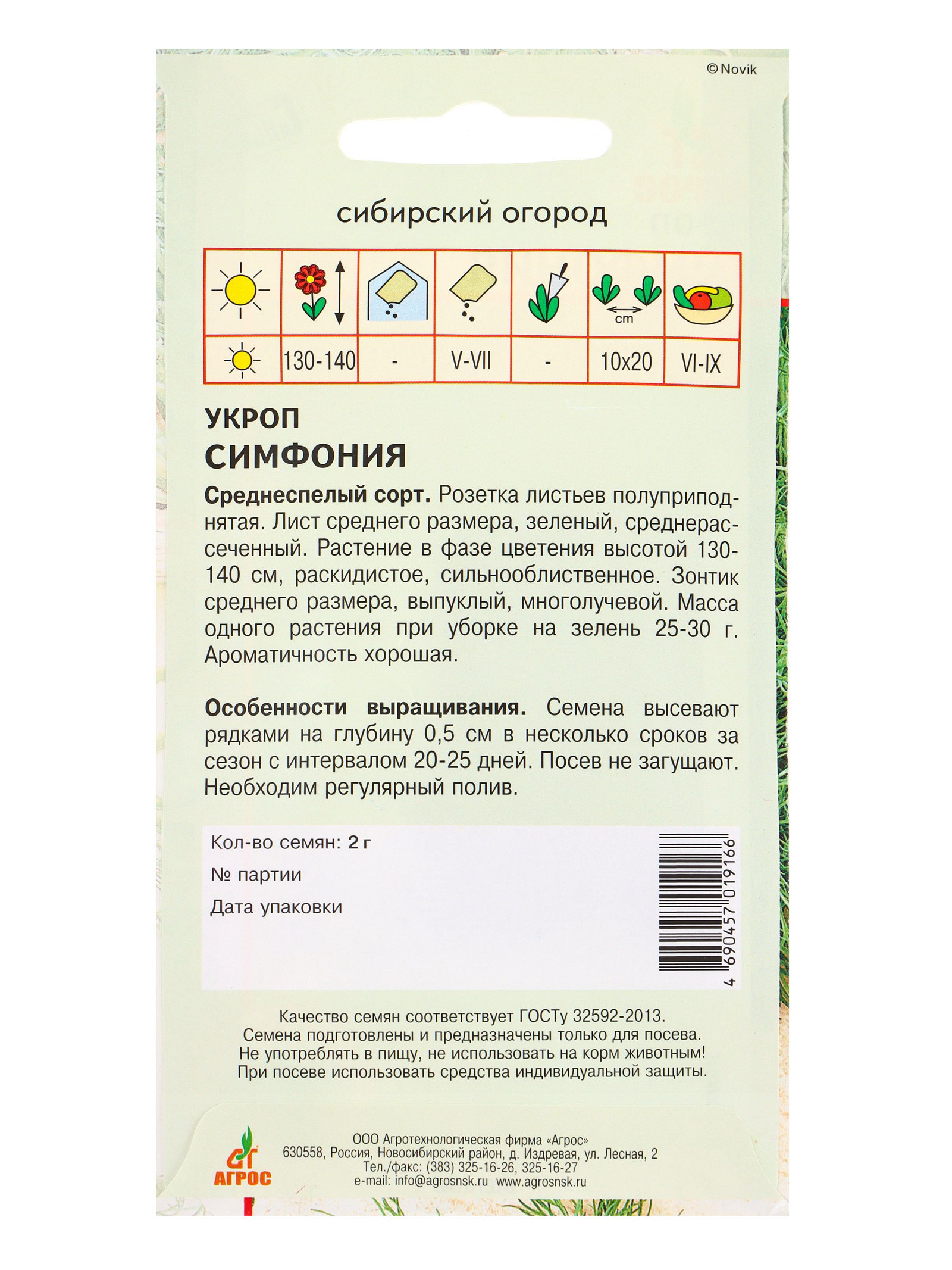 Семена Укроп "Симфония" 2 г, Агросс, Россия