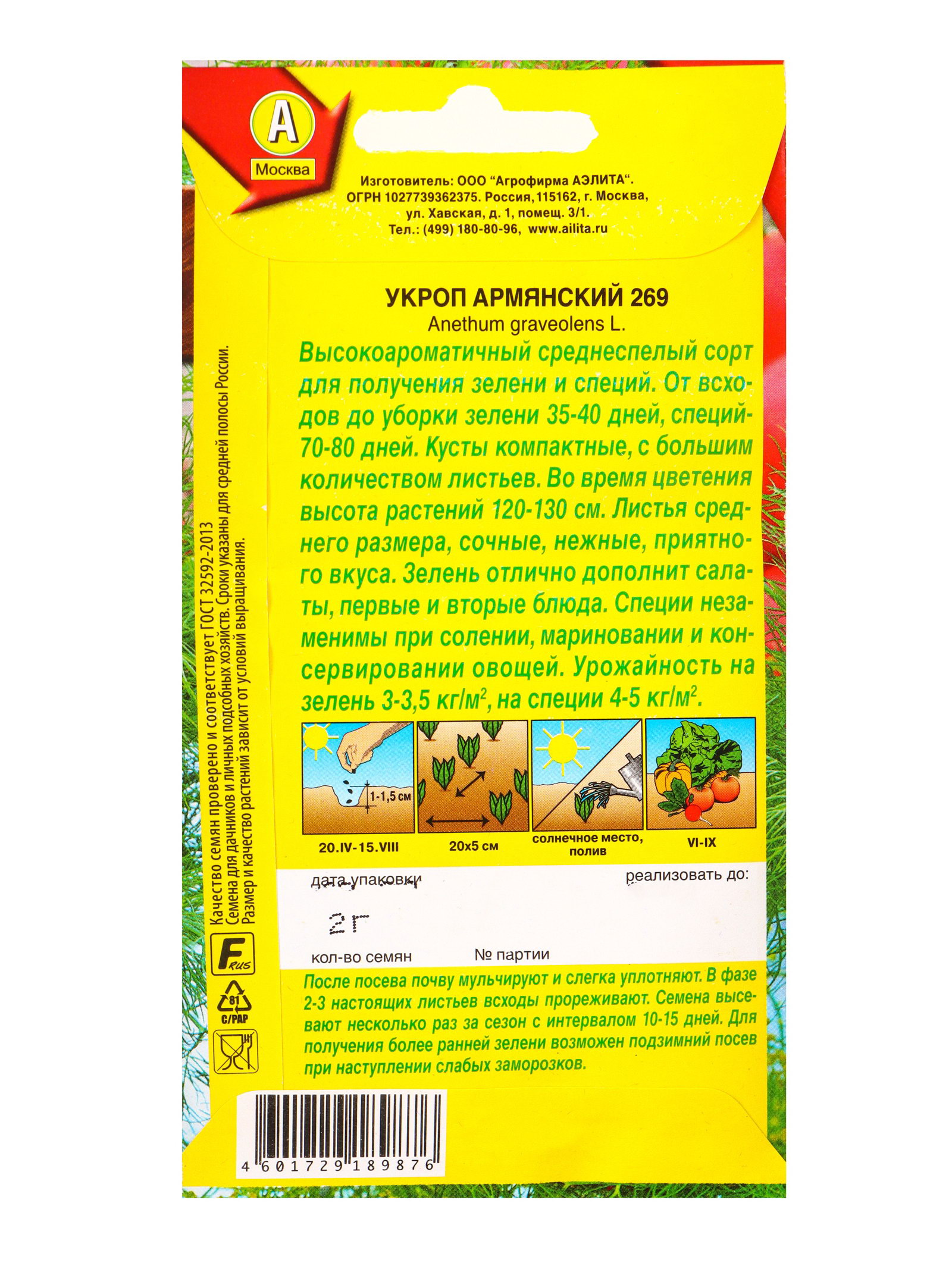 Семена Укроп Армянский 269, Ц/П,2 г, Агрофирма АЭЛИТА, Россия