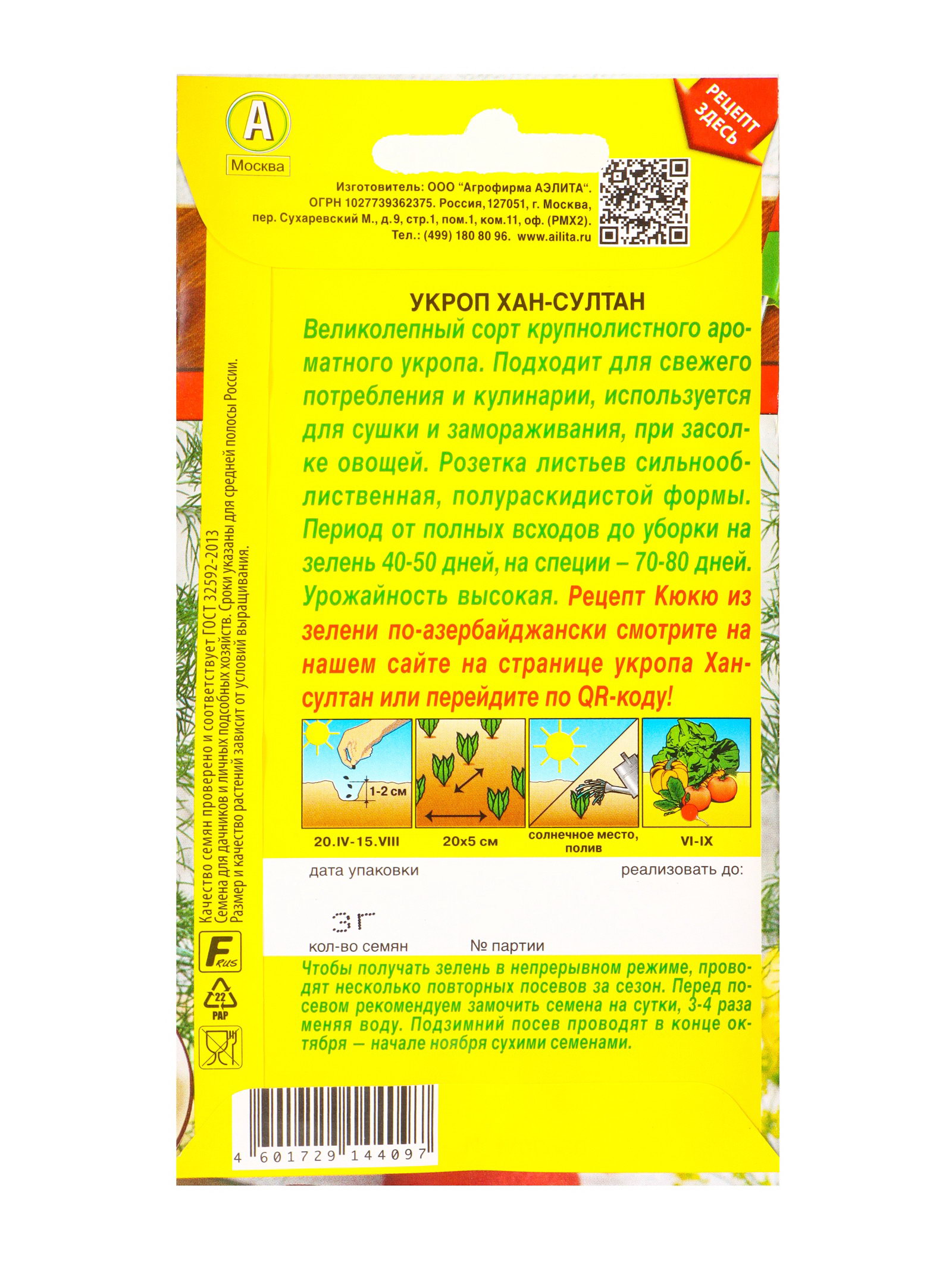 Семена Укроп Хан-Султан Блюда стран мира, Ц/П,3 г, Агрофирма АЭЛИТА, Россия