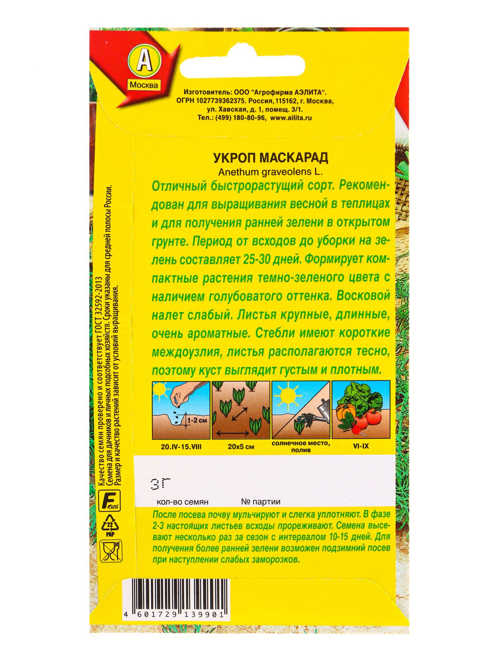 Семена Укроп Маскарад Ор. А, Ц/П,3 г, Агрофирма АЭЛИТА, Франция
