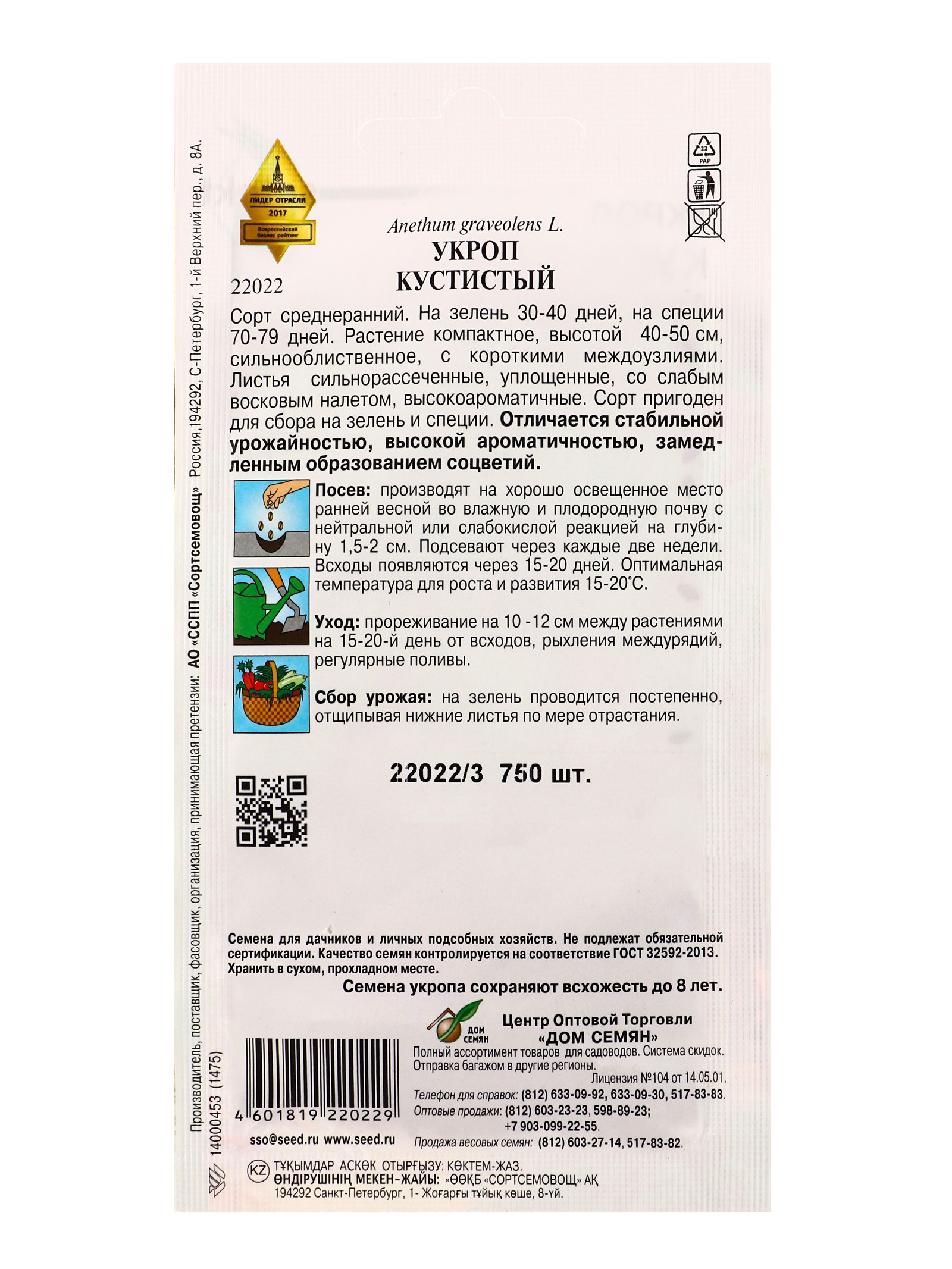 Набор семян Укроп "Кустистый", суперароматный и мегаурожайный, 750 семян, 15x17x5 см., Мой выбор, Россия