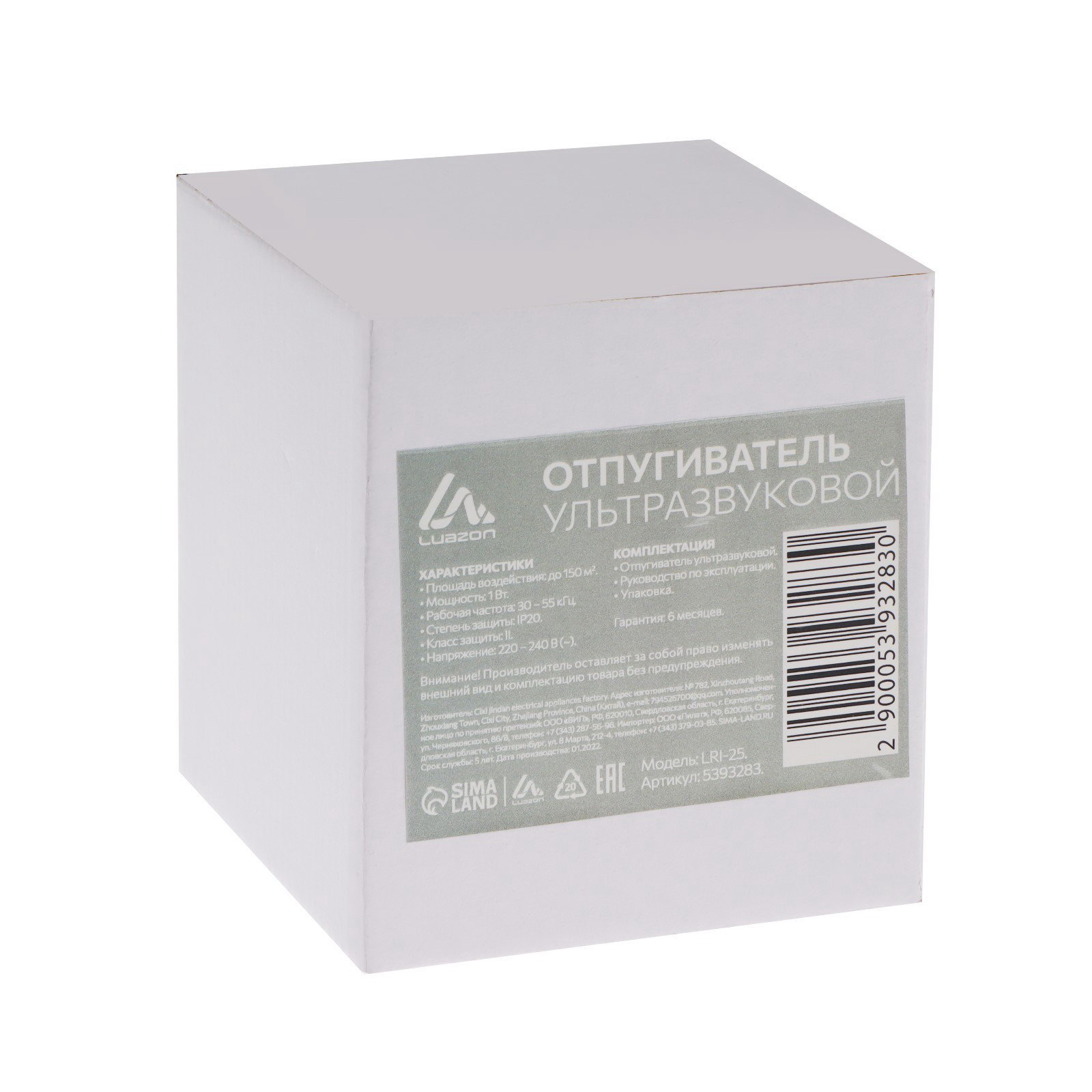 Отпугиватель вредителей Luazon LRI-25, ультразвуковой, 150 м2, 220 В, черный, 7x9.5x10.8 см., Luazon Home, Китай