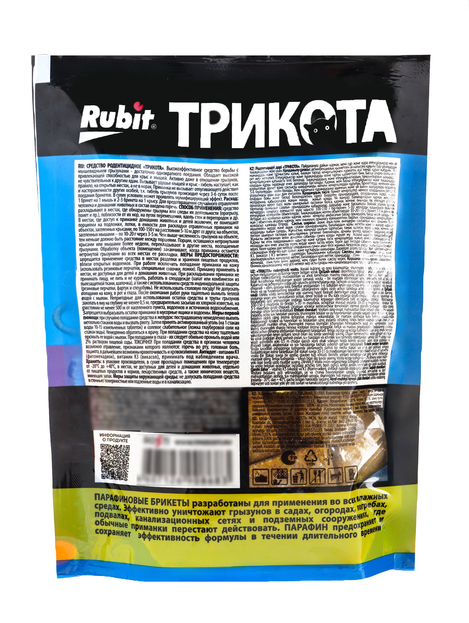 Парафиновый брикет от грызунов набор, 160 г, Rubit, Россия