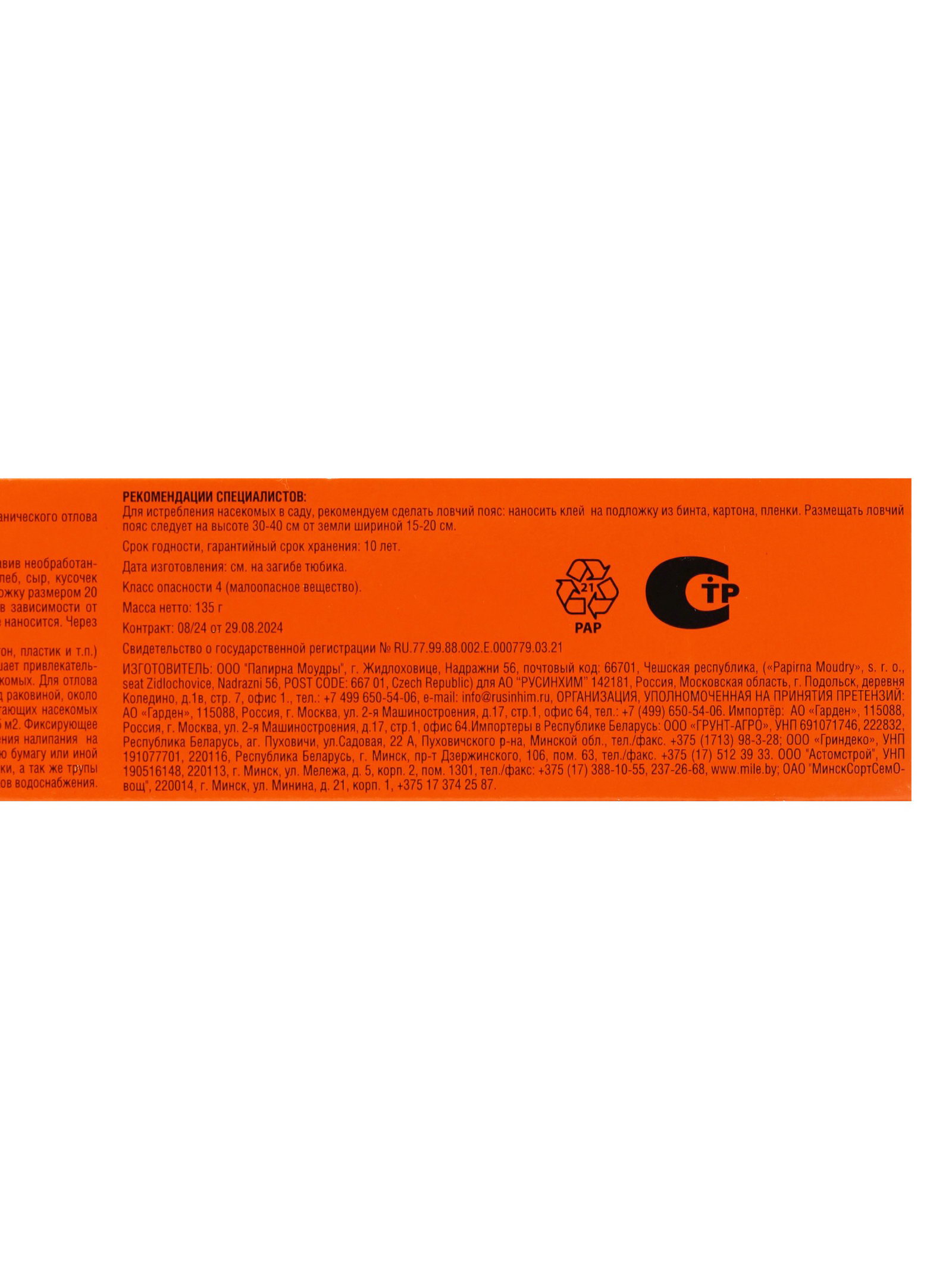 Область применения: От всех насекомых, От грызунов Размер упаковки: 5.5 x 4 x 19.5 см. tnved: 3808919000 Температурное ограничение: Нет Вес, г: 135 Подходит для отлова грызунов на открытой территории, внутри жилых помещений, в детских учреждениях - в тех местах, где запрещено применение отравленных приманок. Особенности: