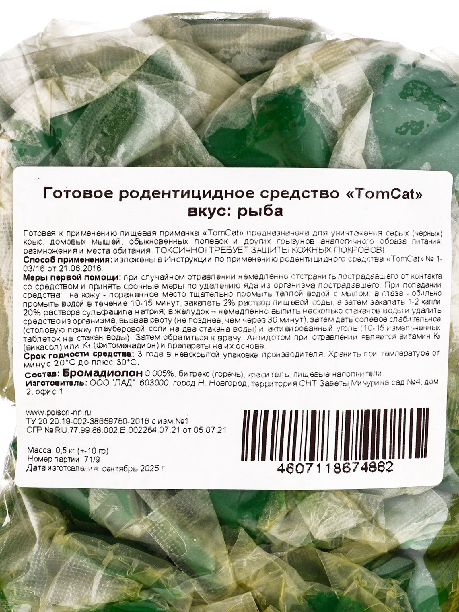 Тесто-брикеты от грызунов микс вкусов, 0.5 кг, ТОМ КОТ, Россия