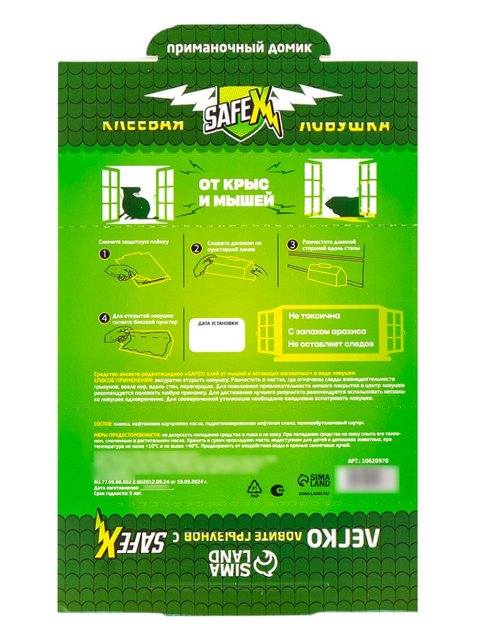 Для чистоты и спокойствия в вашем доме: клеевая ловушка-домик SAFEX - это современное, чистое и эффективное решение проблемы грызунов. Она идеально подходит для использования в жилых помещениях, на дачах и в подсобных постройках, где важны безопасность, гигиеничность и простота применения. | ||
