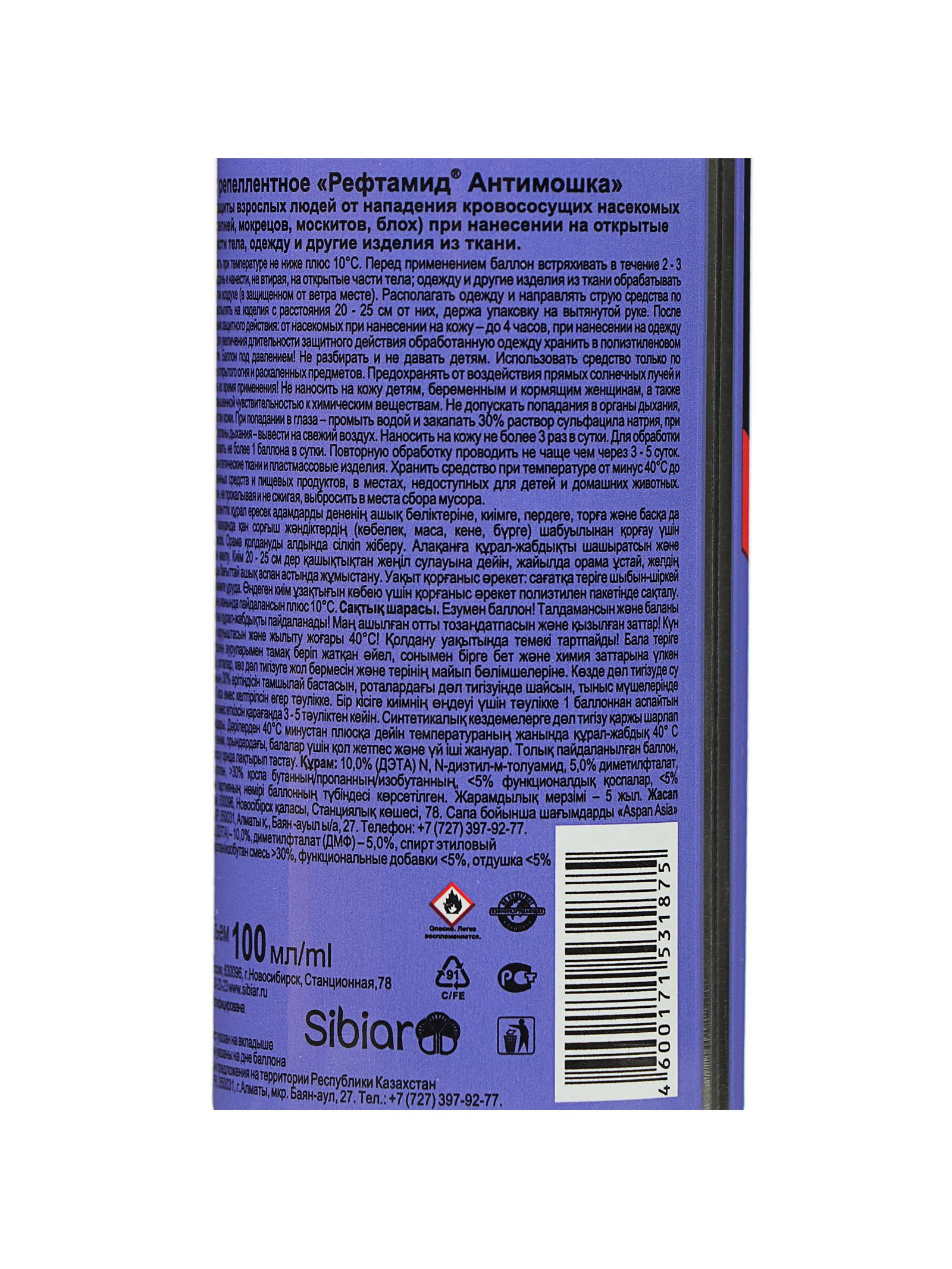 Аэрозоль от насекомых Антимошка, репеллентный, 100 мл, Рефтамид, Россия