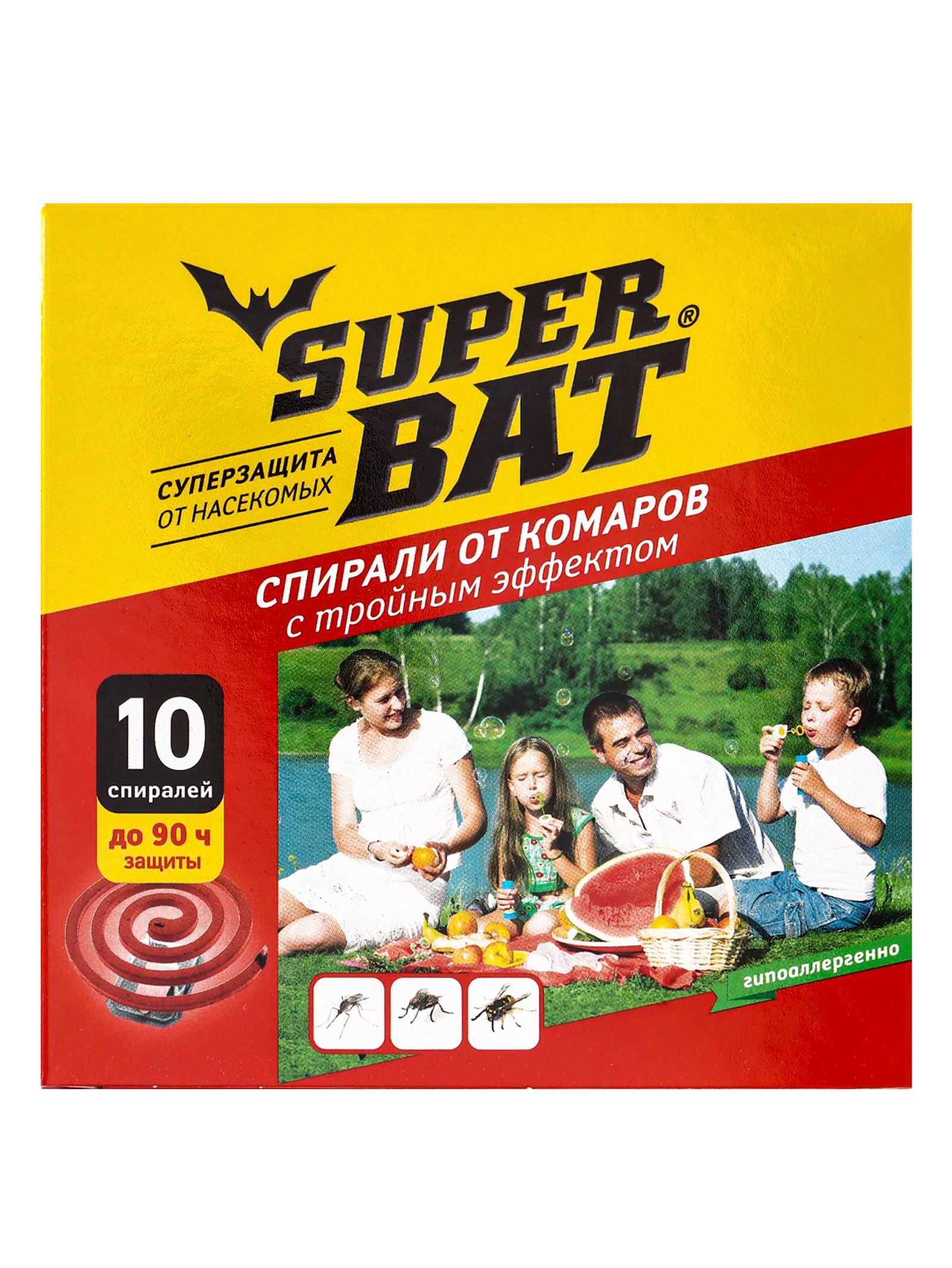Спирали от комаров SuperBat, тройной эффект, 10 шт., Super Bat, Индонезия