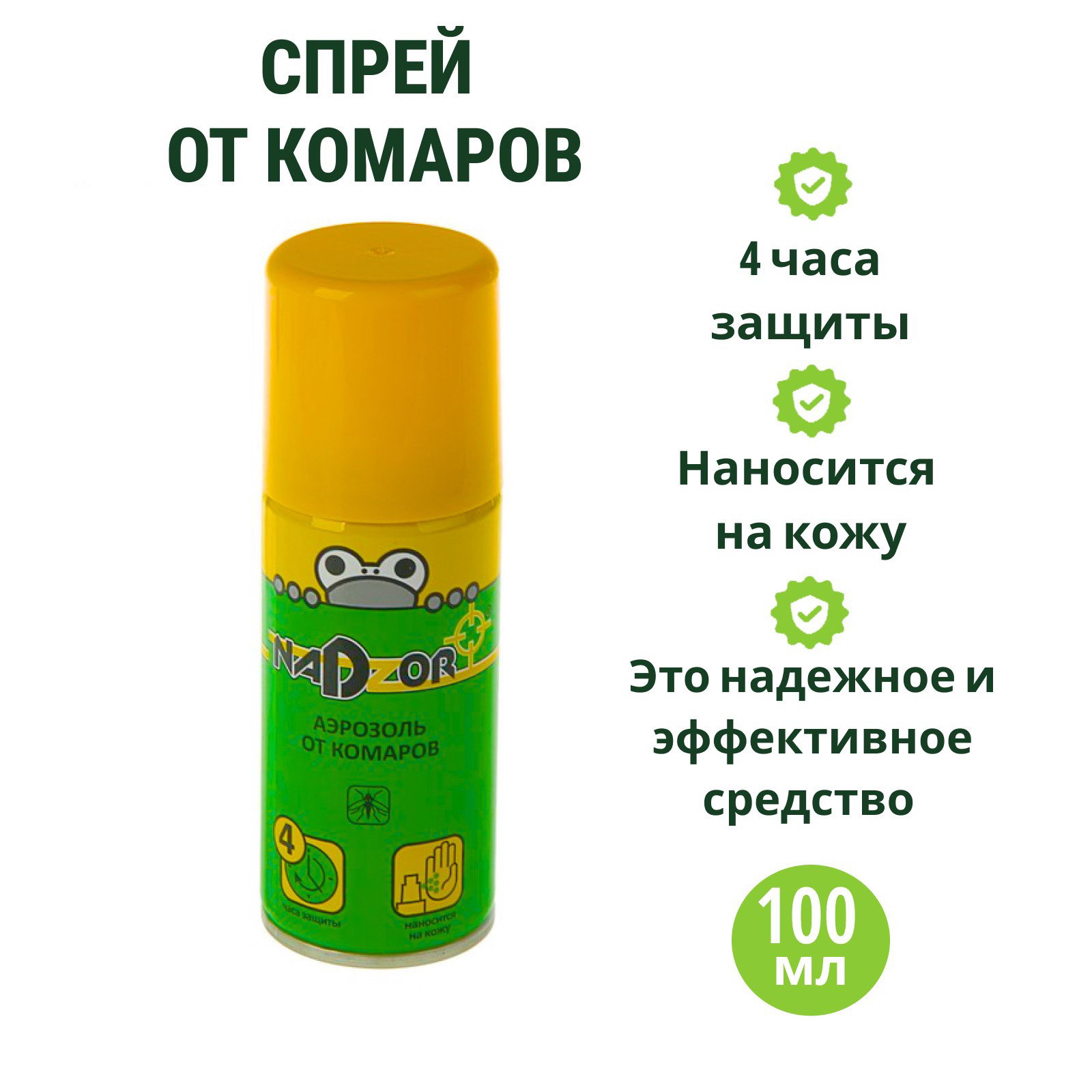 Аэрозоль репеллентный от комаров 100 мл, Nadzor, Россия