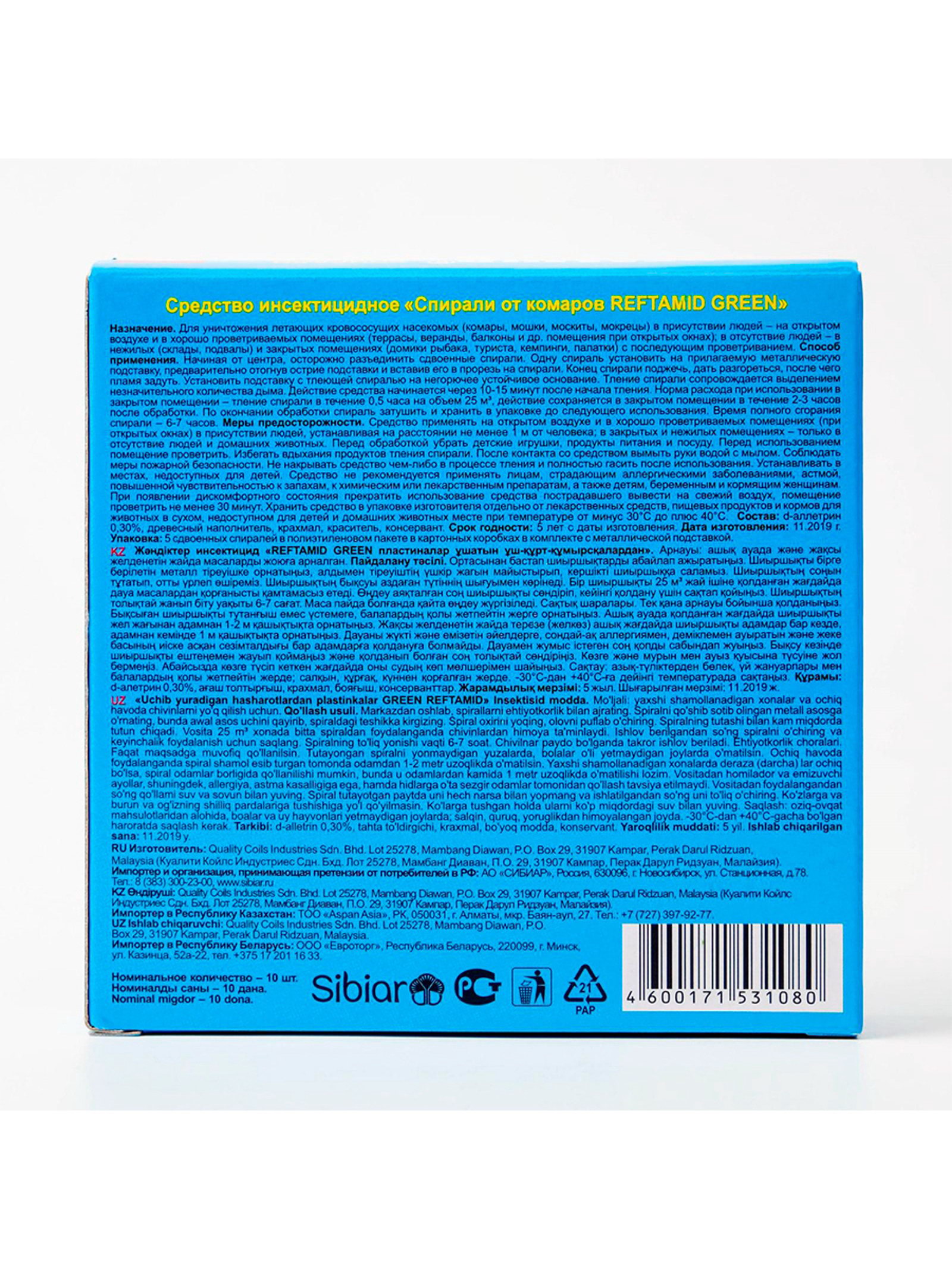 Cпирали от комаров 10 шт., Рефтамид, Малайзия