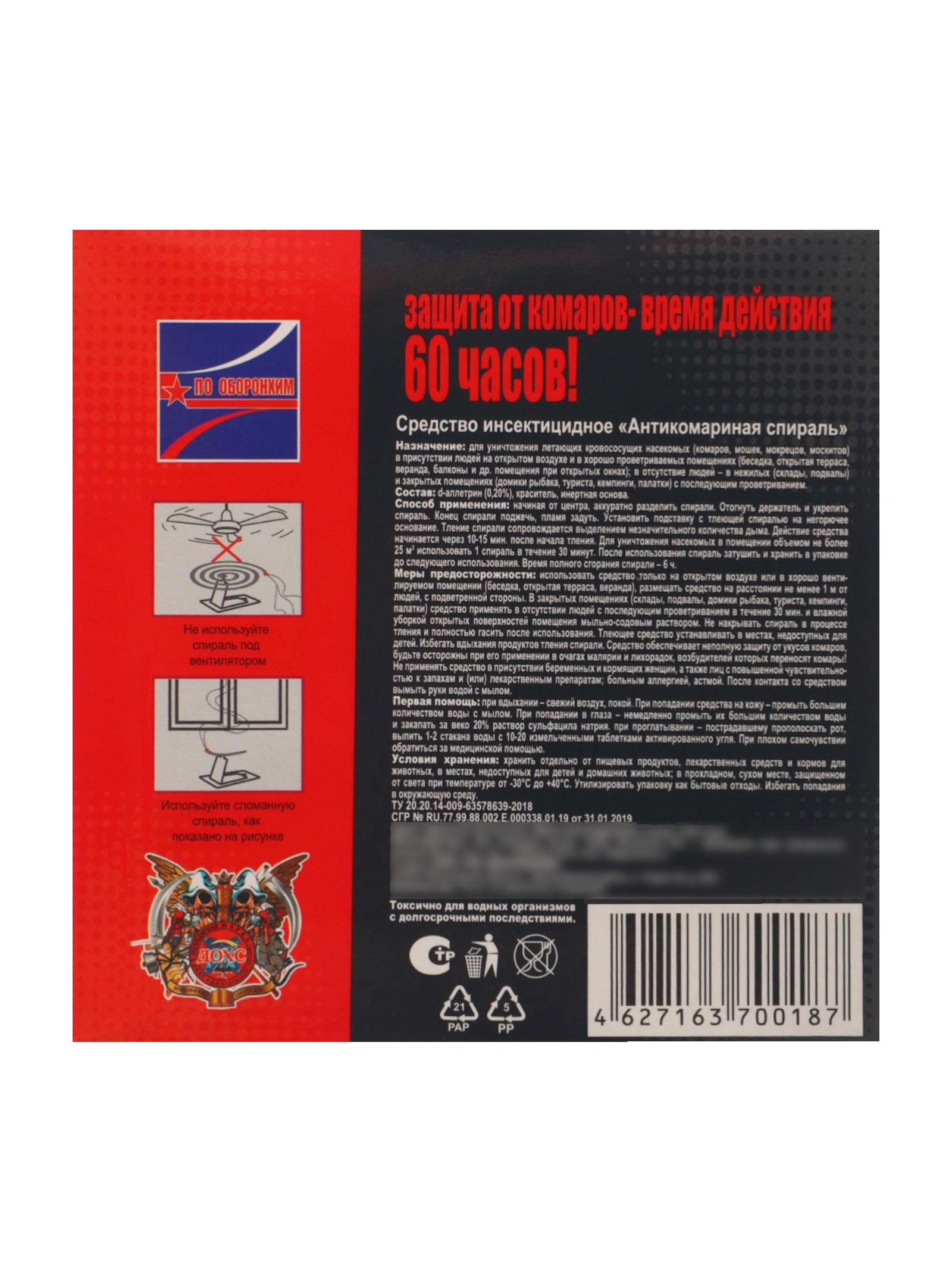 Спирали от комаров "ДОХС", угольные, 10 шт., Оборонхим, Россия