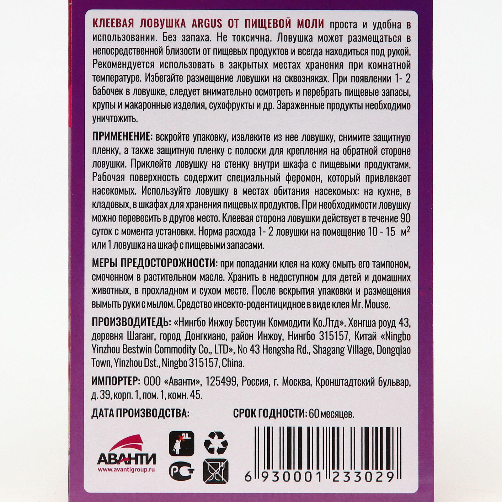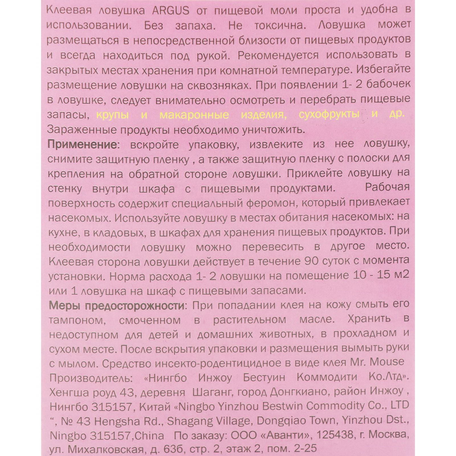 Клеевая ловушка от моли "Аrgus", с аттрактантом, без запаха, 2шт, ARGUS, Китай