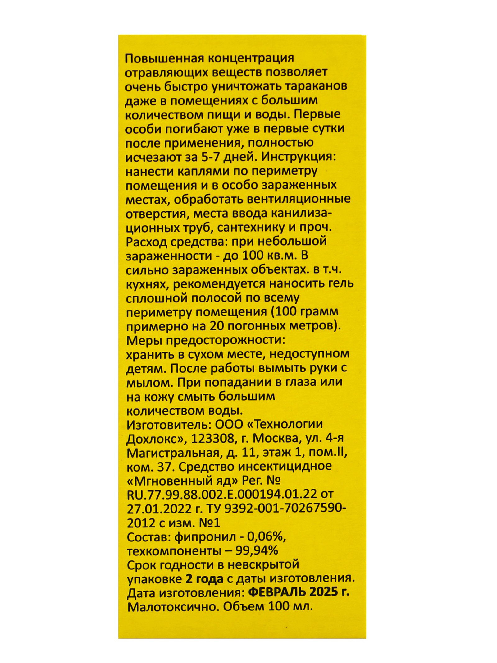 Средство от тараканов "Мгновенный яд", гель, 100 мл, Дохлокс, Россия