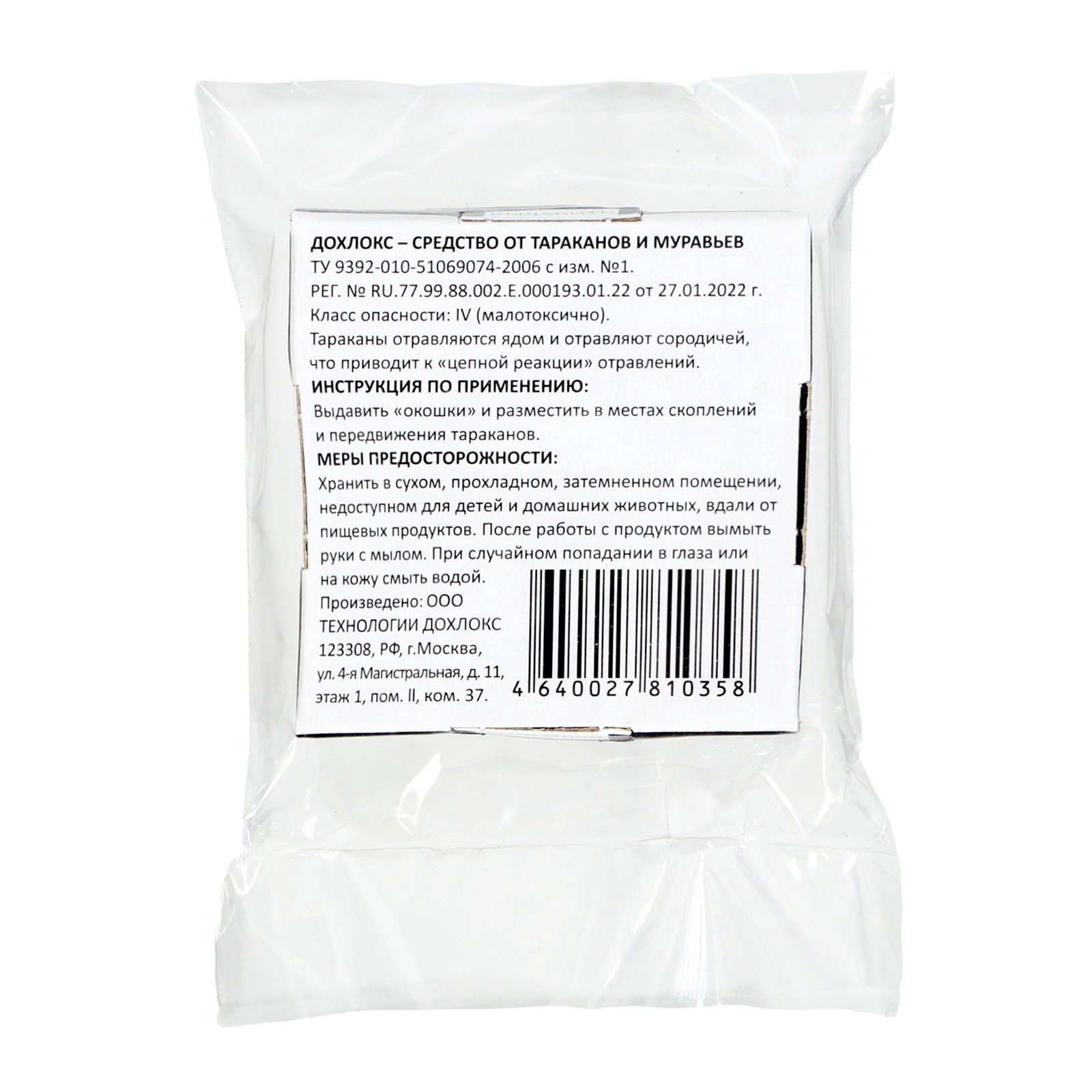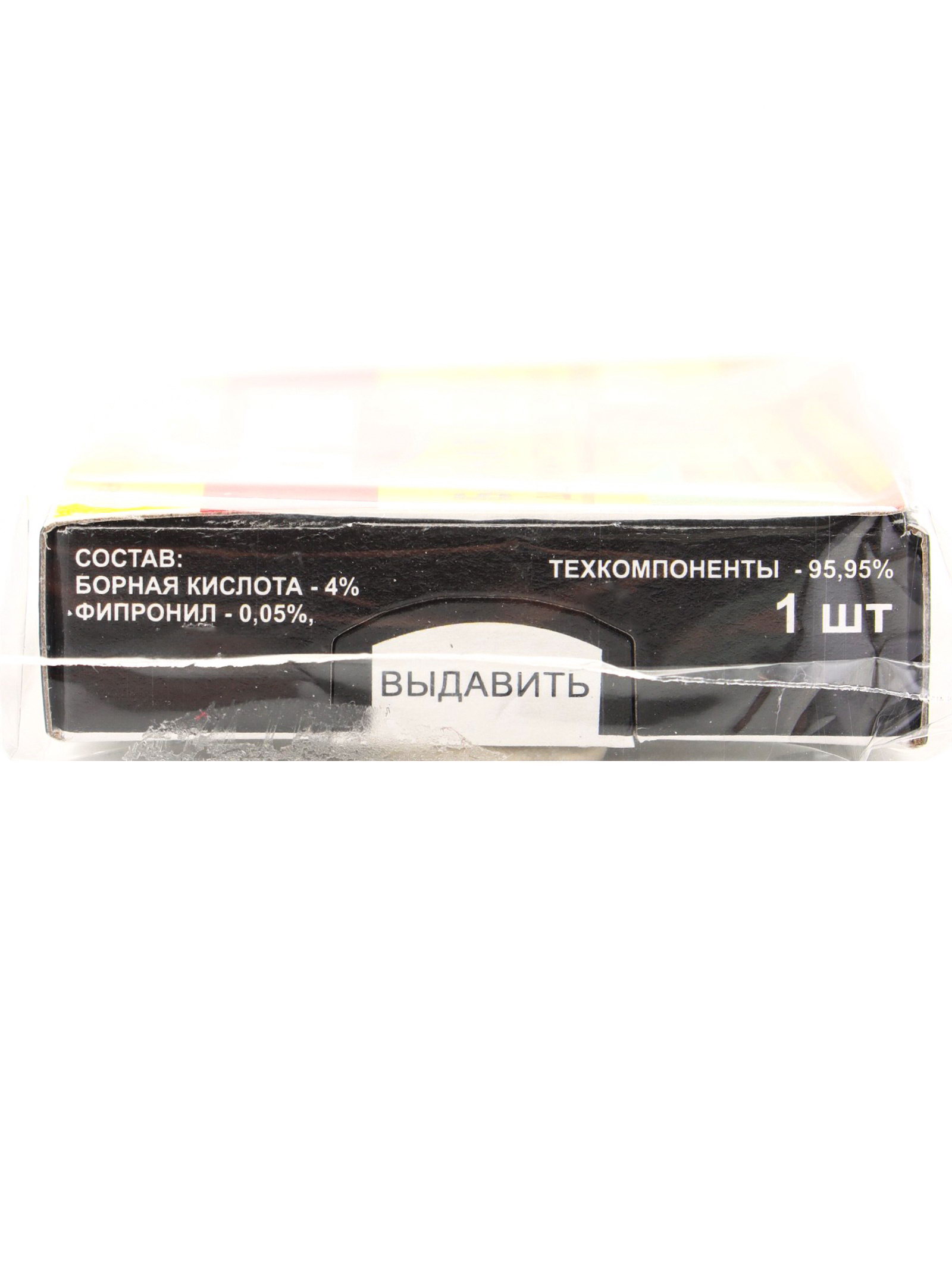 Размер упаковки: 5 x 1.3 x 5 см. Способ нанесения: Размещение приманки Форма средства: Пластины Вид средства: Ловушка Действующие вещества: Борная кислота tnved: 3808918000 Температурное ограничение: Нет Область применения: От всех насекомых ОписаниеПри использовании средства тараканы отравляются ядом и заражают сородичей. Начинается цепная реакция по типу эпидемической, которая в скором времени приводит к массовой гибели популяции. Инструкция по применению: Выдавить "окошки" и разместить приманку в точках скопления и передвижения тараканов.Меры предосторожности: Хранить в сухом, прохладном, затемнённом помещении, недоступном для детей и домашних животных, вдали от пищевых продуктов. После работы со средством вымыть руки с мылом. При попадании в глаза или на кожу смыть большим количеством воды.Составфипронил - 0,055% ; техкомпоненты - 94,45% | ||