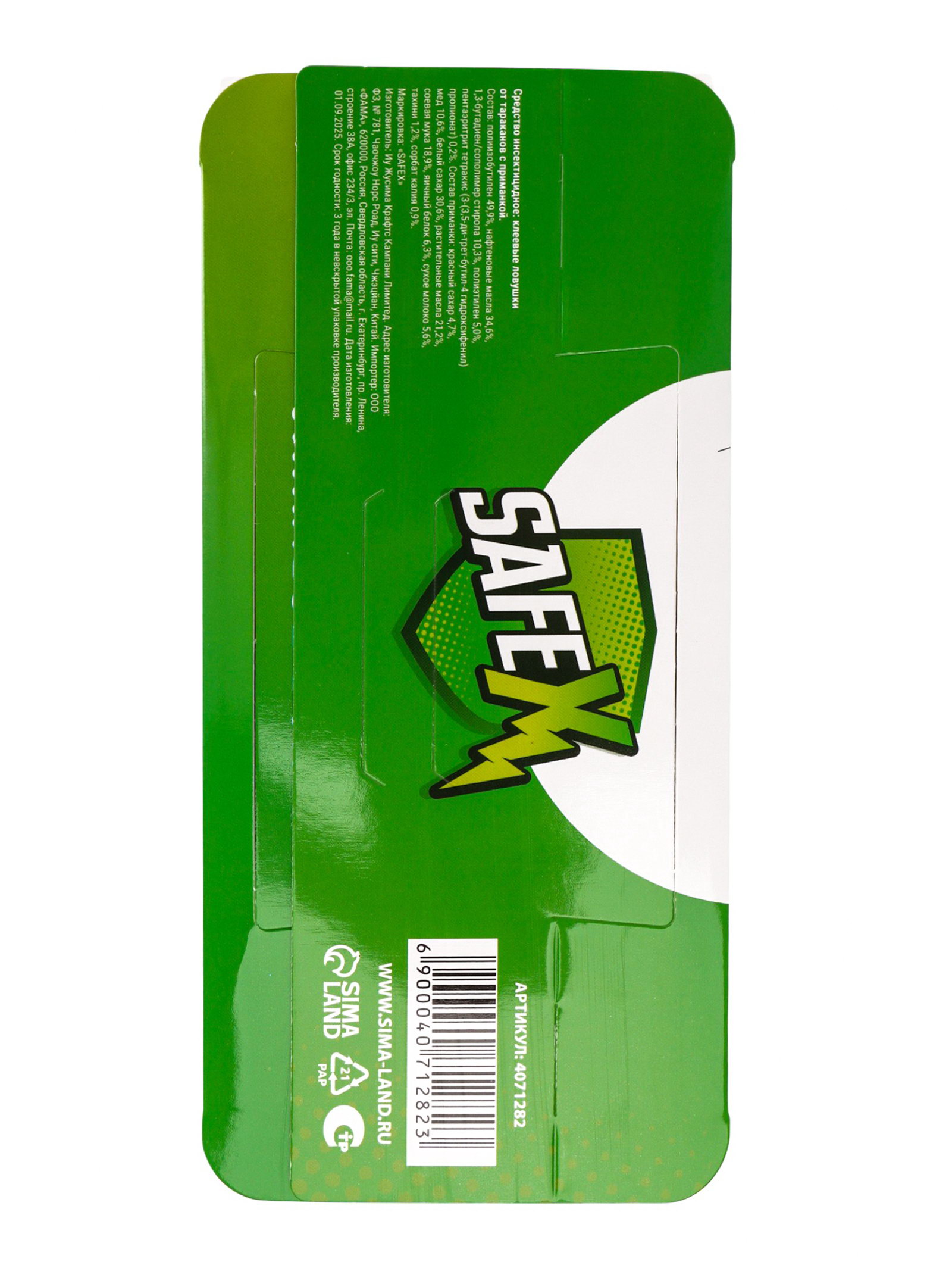 Область применения: От муравьев, От тараканов Размер упаковки: 9 x 4.5 x 19 см. tnved: 3808998000 Вид средства: Ловушка Способ нанесения: Размещение приманки Форма средства: Клей Действующие вещества: Полиизобутилен Клеевые ловушки SAFEX от тараканов и муравьев, набор 15 шт. – это механическое средство для контроля численности ползающих насекомых. Ловушки используют принцип физического удержания.