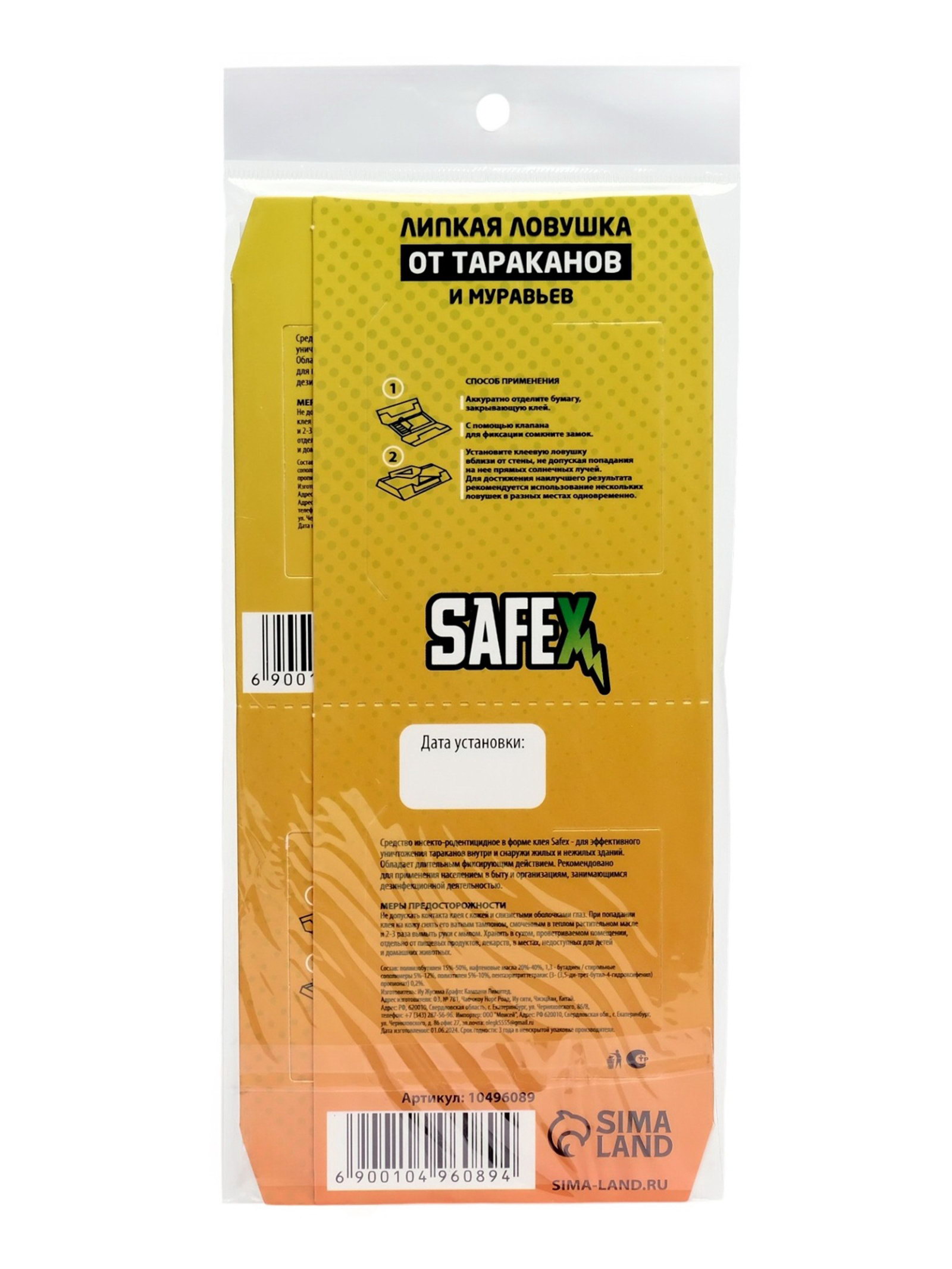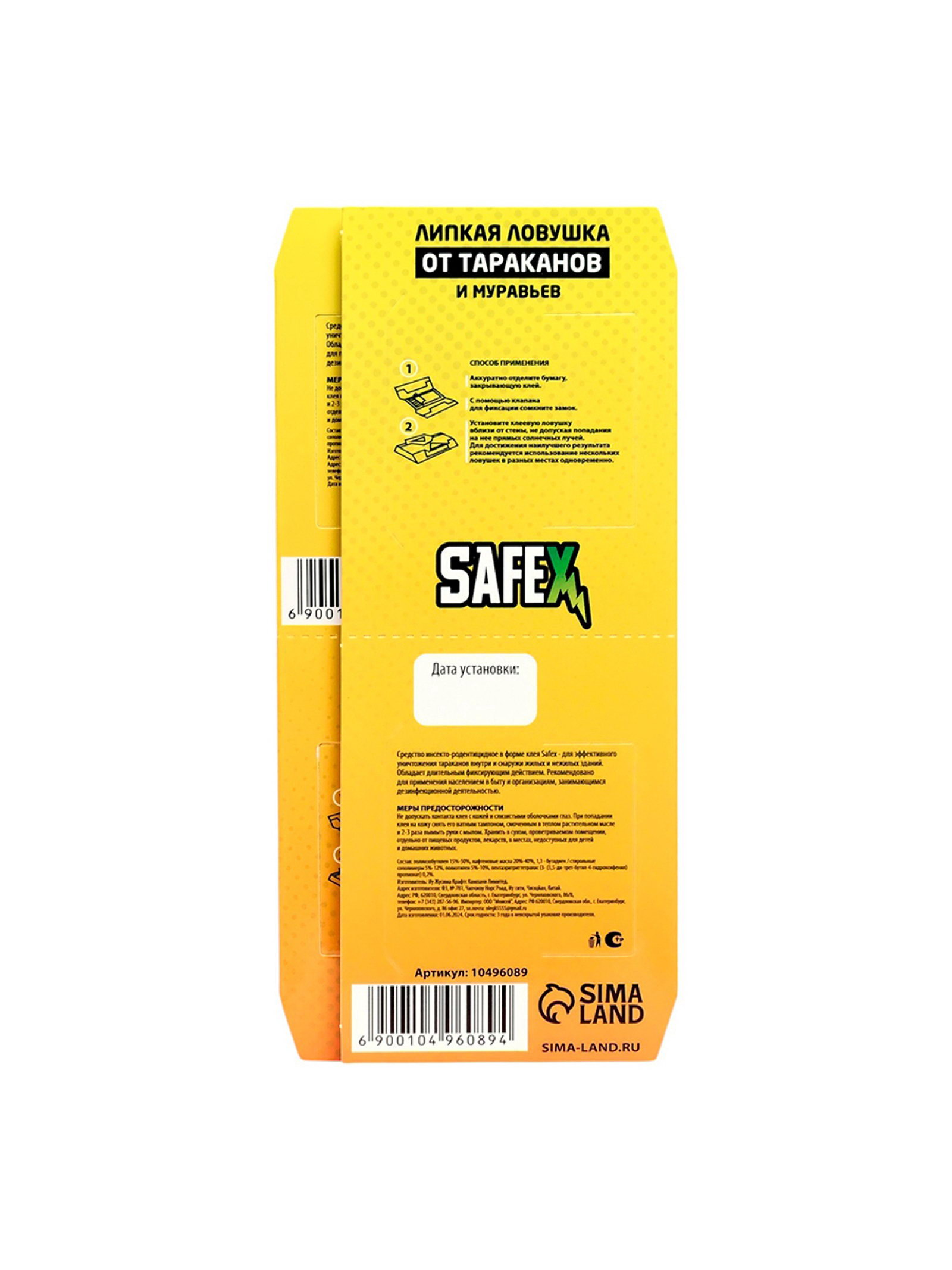 Размер упаковки: 9 x 1.5 x 19.5 см. tnved: 3808918000 Вид средства: Ловушка Способ нанесения: Размещение приманки Действующие вещества: Фипронил Форма средства: Клей Область применения: От тараканов ** Клеевая ловушка-домик от тараканов SAFEX** представляет собой эффективное средство для борьбы с насекомыми в домашних условиях. Эта ловушка разработана специально для ловли тараканов и других ползучих насекомых, которые могут быть вредными для здоровья и комфорта людей. Ключевое преимущество клеевой ловушки-домика SAFEX заключается в ее удобстве использования и высокой эффективности. Ловушка состоит из двух частей, что обеспечивает увеличенную площадь для ловли насекомых. Каждая часть ловушки имеет специальное клейкое покрытие, которое надежно удерживает тараканов и предотвращает их дальнейшее распространение. Применение клеевой ловушки-домика SAFEX просто и удобно. Для установки ловушки не требуется особых навыков или специальных инструментов. Достаточно разделить ловушку на две части и разместить их в местах скопления насекомых, таких как кухня, ванная комната, подвал или другие места, где обычно встречаются тараканы. Клеевая ловушка-домик SAFEX начнет действовать немедленно, привлекая и удерживая насекомых на своей поверхности. Эффективность клеевой ловушки-домика SAFEX подтверждена многочисленными тестами и положительными отзывами пользователей. Благодаря своей надежности и эффективности, эта ловушка является одним из наиболее популярных средств борьбы с тараканами и другими ползучими насекомыми. В заключение, клеевая ловушка-домик от тараканов SAFEX представляет собой надежное и эффективное средство для борьбы с насекомыми в домашних условиях. Ее простота использования, высокая эффективность и подтвержденная эффективность делают ее отличным выбором для тех, кто сталкивается с проблемой насекомых в своем доме. | ||