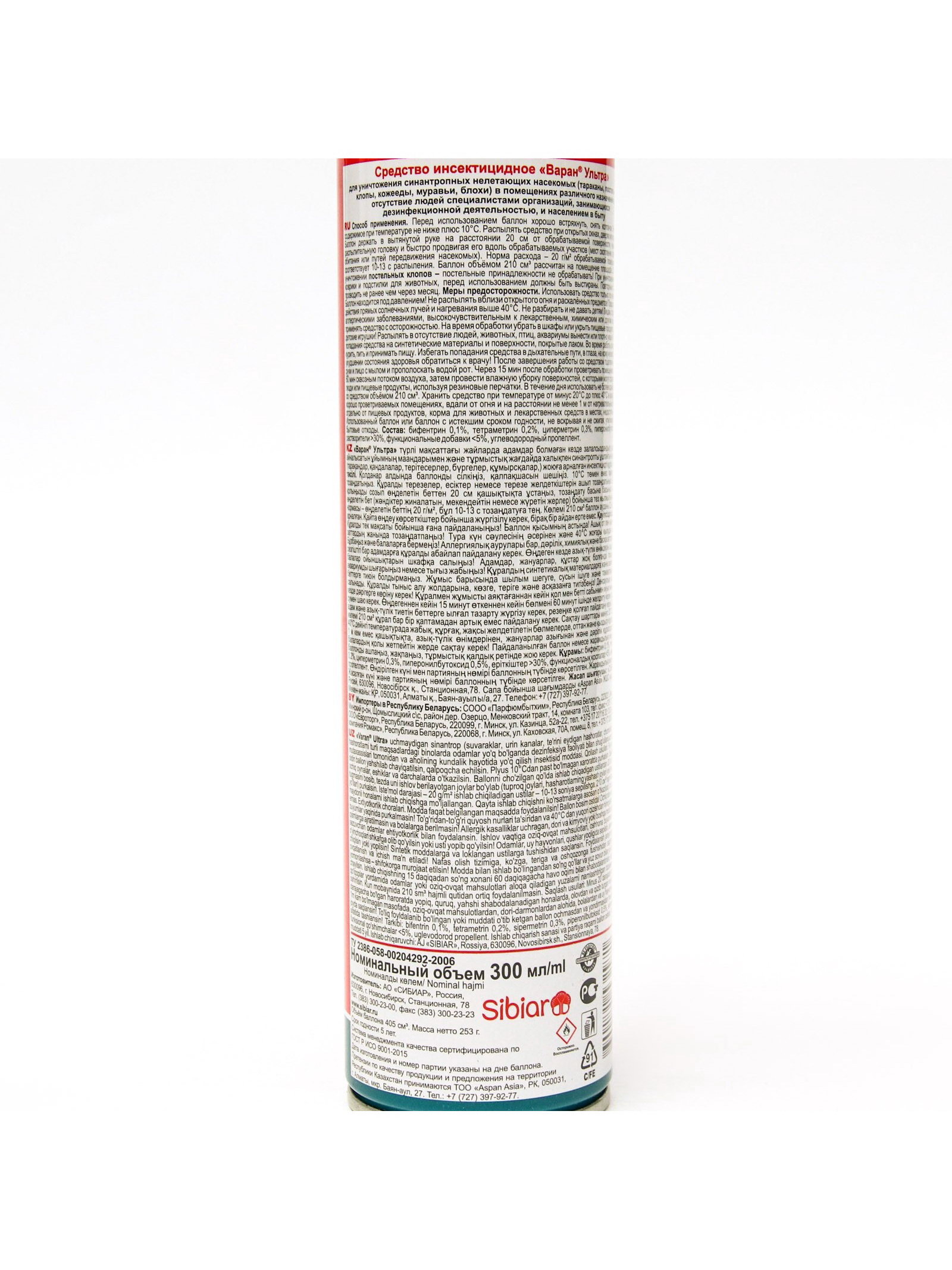 Средство от насекомых Дихлофос "Варан", Ультра, универсальный, аэрозоль, 300 мл, ВАРАН, Россия