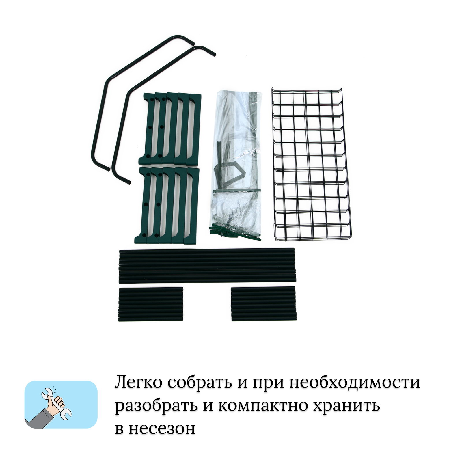 Практичность и простота использования Парник поразительно прост в сборке и установке. Лёгкий, но прочный каркас из трубы диаметром 16 мм легко переносится, а плотная пленка (80 мкм) надёжно крепится, защищая растения от неблагоприятных условий. Идеальный выбор для вашего дома Если вы хотите внести зелень даже в ограниченное пространство, этот парник станет вашим надежным помощником. Он подходит как для выращивания зелени, так и для начинающих садоводов, желающих экспериментировать с растениями. | ||