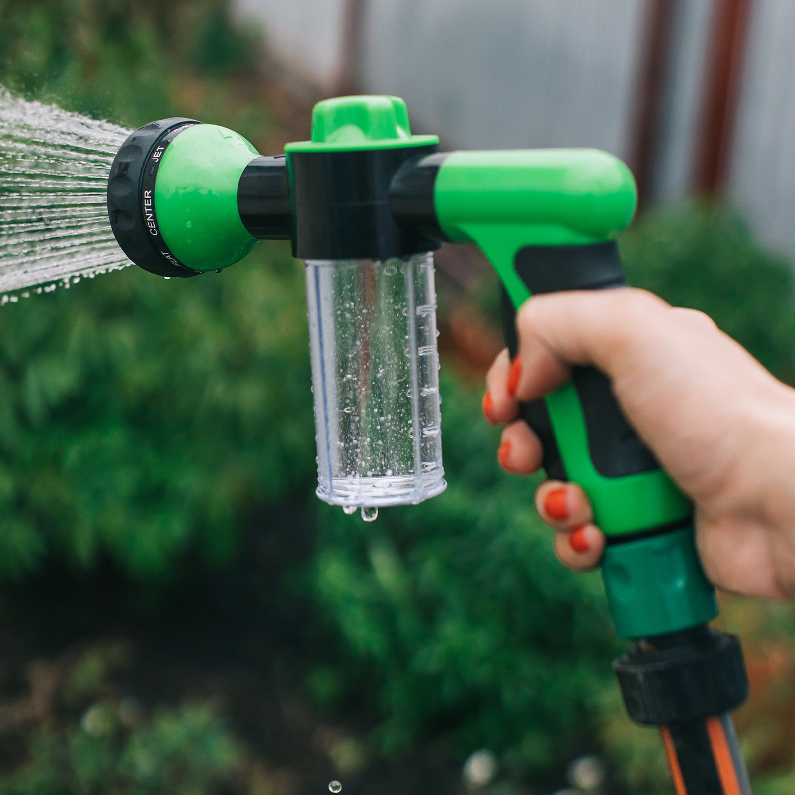 Размер упаковки: 16 x 6.5 x 23 см. tnved: 8424491000 tnved: 8424491000 Вид распыления: Многофункциональный Набор: Нет Тип соединения: Быстросъёмное Тип: Пистолет Многофункциональный пистолет для полива с 8 режимами распыления. Идеальный выбор для ухода за садом, мытья автомобиля или других хозяйственных нужд. Оснащен встроенной колбой для моющих средств и быстросъёмным соединением, что делает его незаменимым инструментом в вашем арсенале. Легкий, стильный и надежный помощник для любых задач.