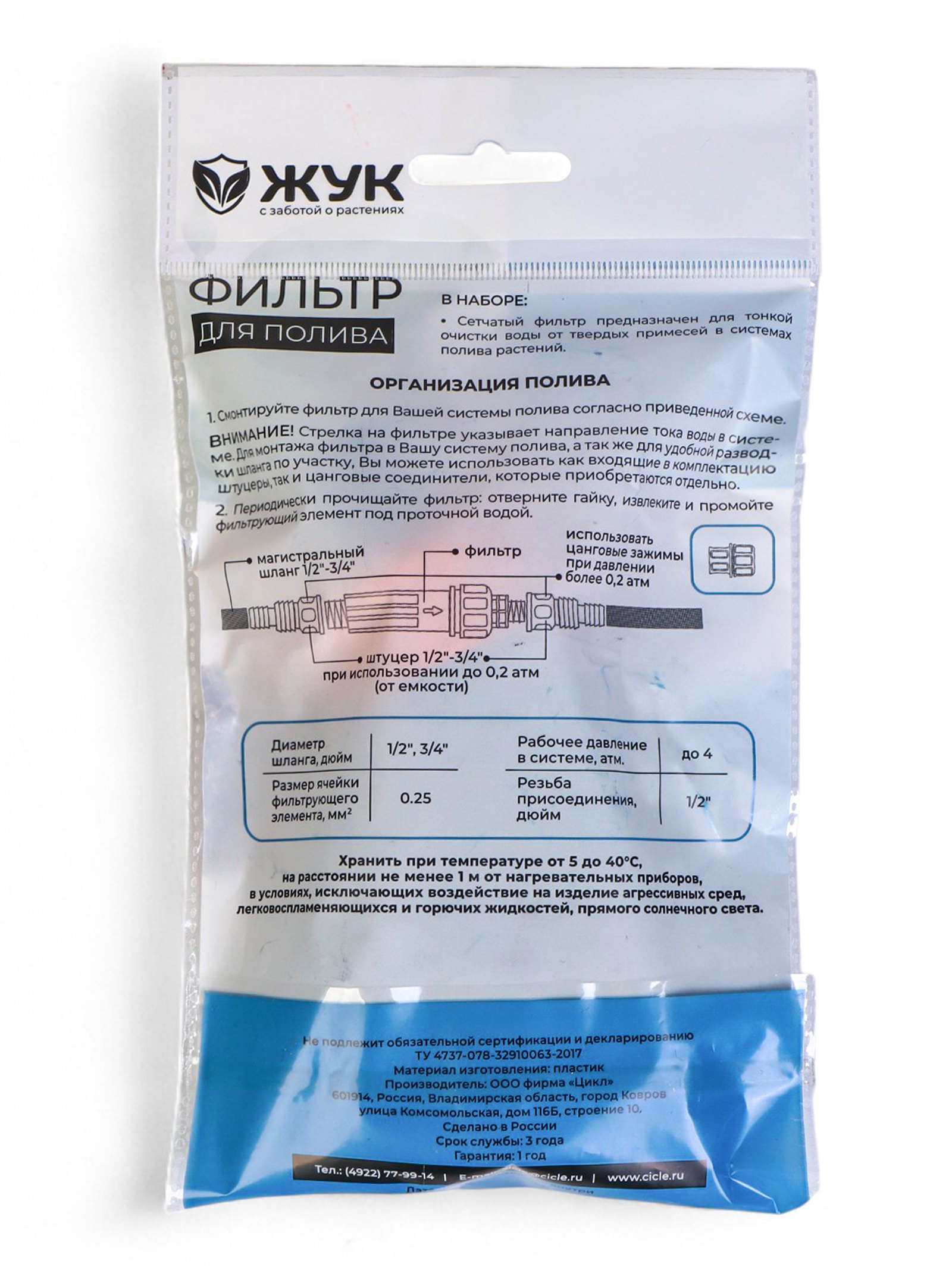 Фильтр для очистки воды, для шлангов 1/2", Жук, Россия