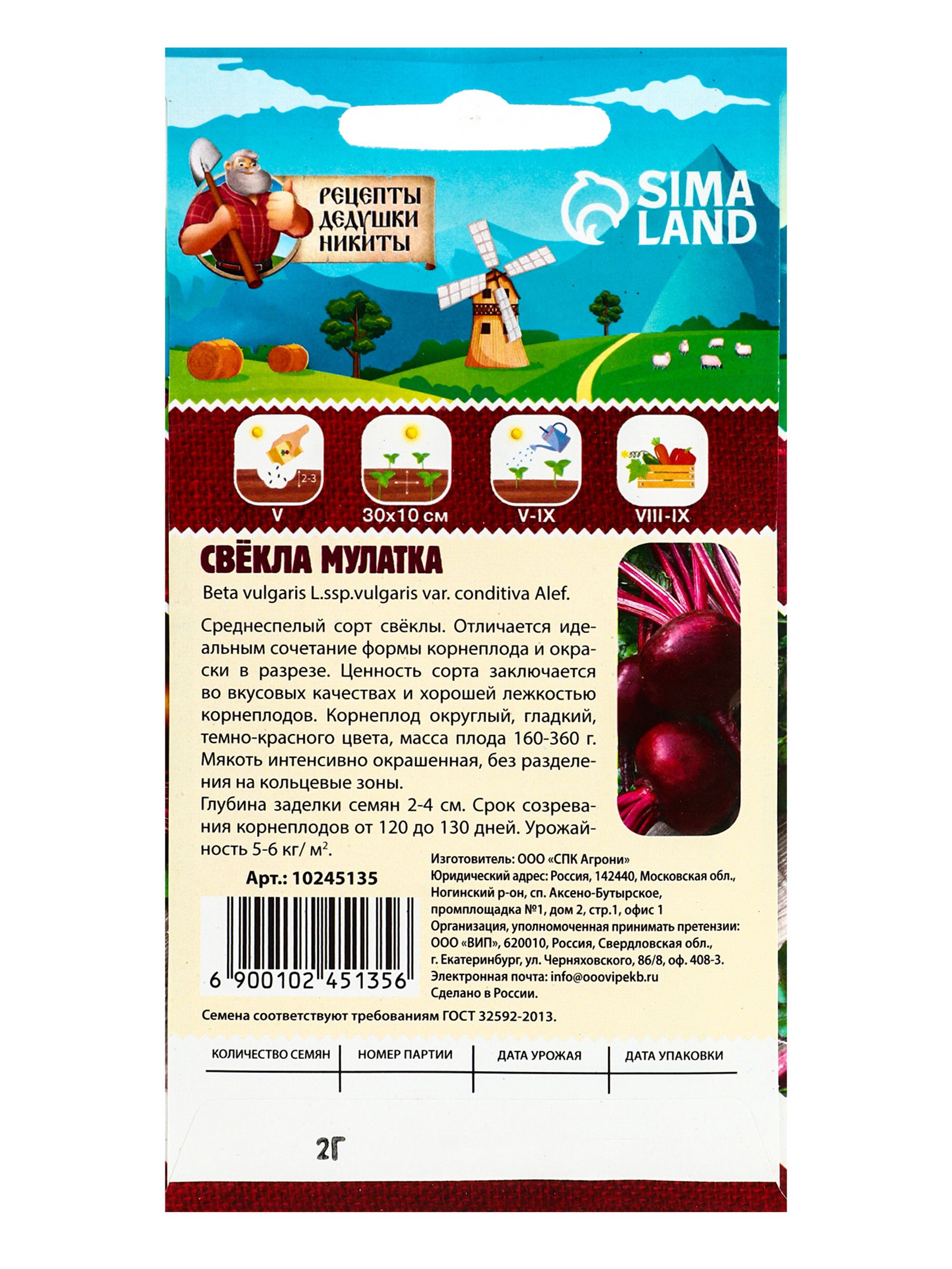 Семена свеклы "Рецепты дедушки Никиты" это среднеспелый сорт, который ценится за стабильную урожайность, насыщенный темно-бордовый цвет и отличные вкусовые качества. Свекла идеально подходит для зимнего хранения. - Насыщенный цвет и сладкий вкус: главное достоинство сорта интенсивная, равномерная темно-бордовая окраска мякоти и кожицы без светлых колец. Такая свекла не только красива в нарезке, но и обладает выраженным сладковатым вкусом, что важно для приготовления борщей, винегретов и соков.