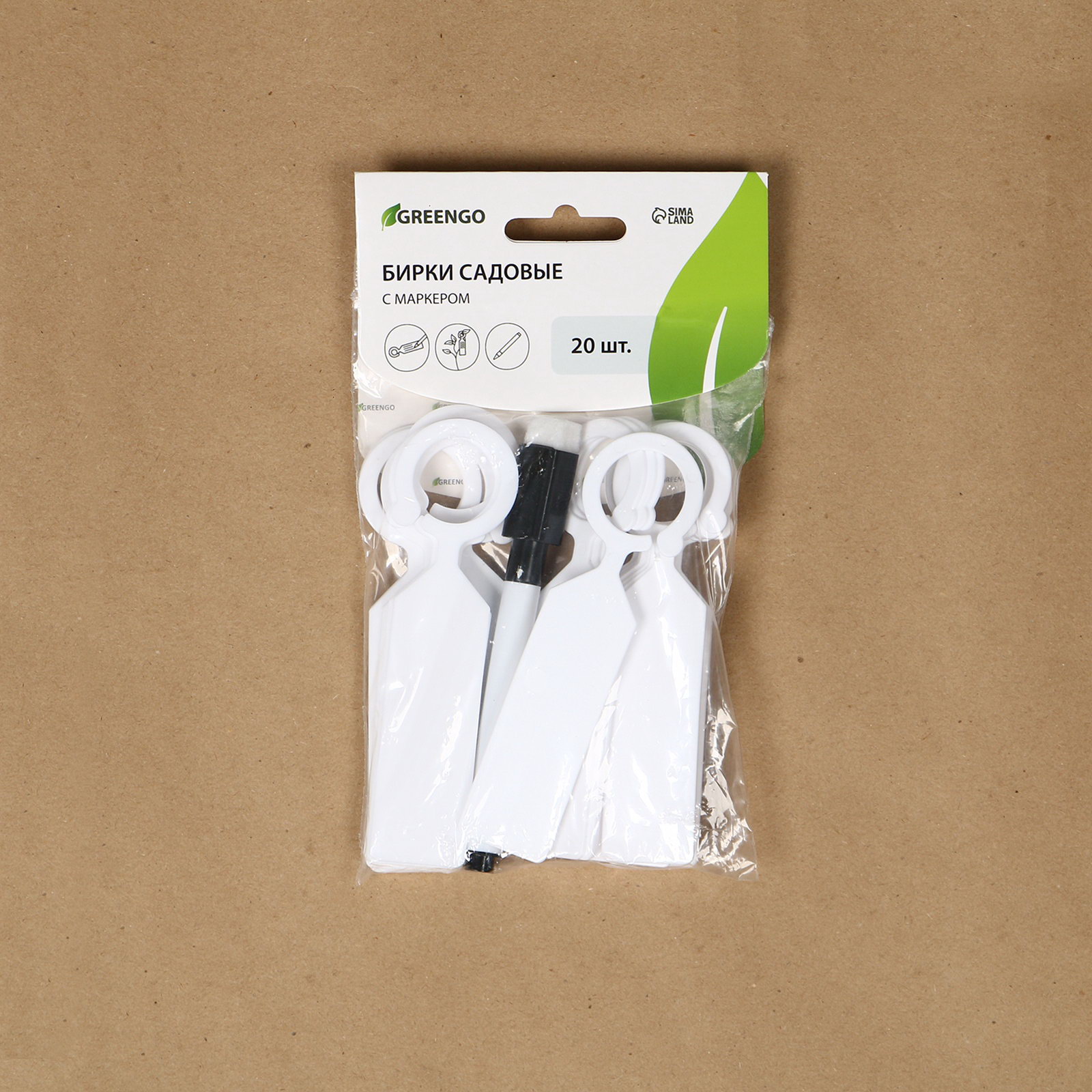 Бирки садовые, для маркировки растений, 10.5 см, набор 20 шт., маркер, пластик, белые, 5x10x2 см., Greengo, Китай