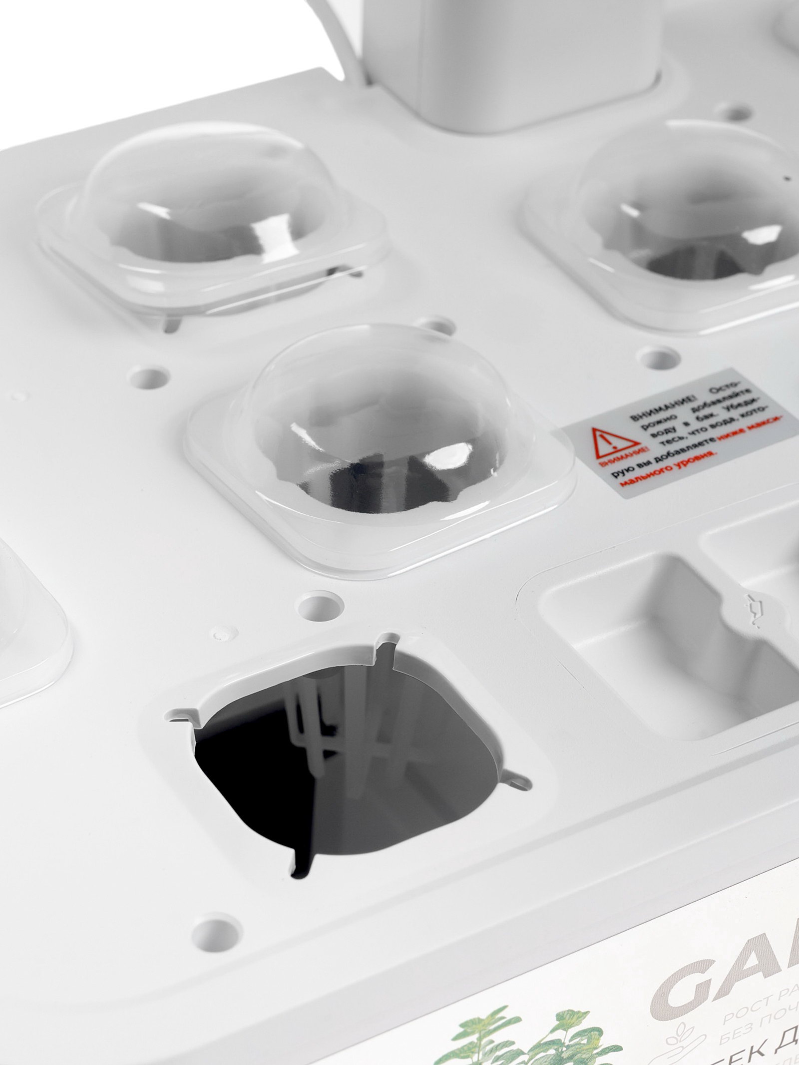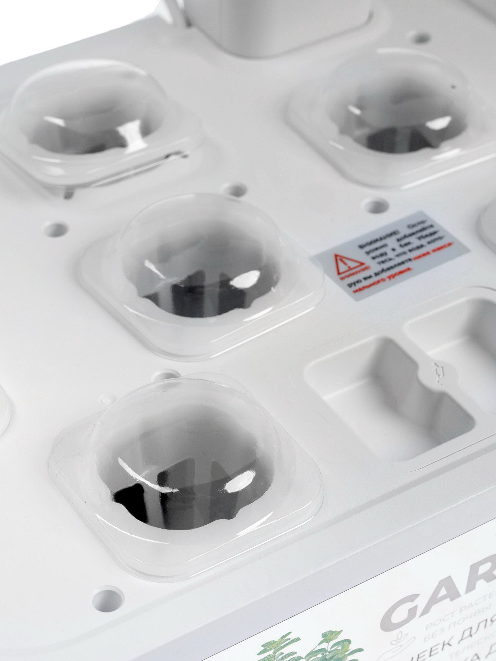 ![]() Удобный долив воды Объём резервуара 3.5 л ![]() Циркуляция воды Насос запускает циркуляцию каждые 30 минут. Вода, циркулируя, насыщает корни кислородом, необходимым для роста растений ![]() Телескопический кронштейн Лампа расположена на кронштейне, способном подниматься на высоту до 32 см ![]() 12 посадочных мест Выращивайте несколько видов растений одновременно. В каждую ячейку можно посадить до 3 семян ![]() Компактность Небольшие размеры позволяют разместить умный сад в любом месте дома ![]() Комплектация