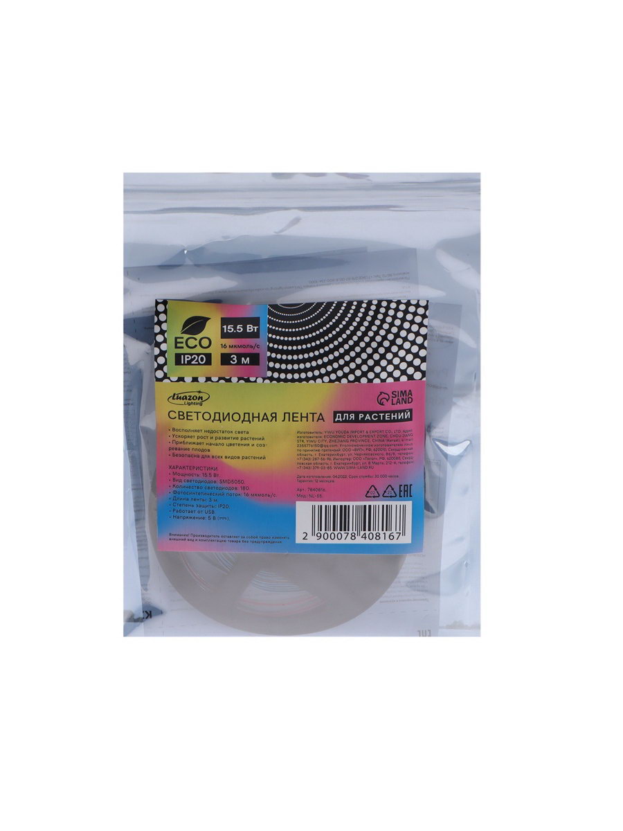 Фитолента для растений Luazon, светодиодная, 10.3 Вт, 3 м, IP20, 5 В, 60 LED/м, USB, SMD5050, мультиспектральная, 14x15x1.5 см., Luazon Lighting, Китай