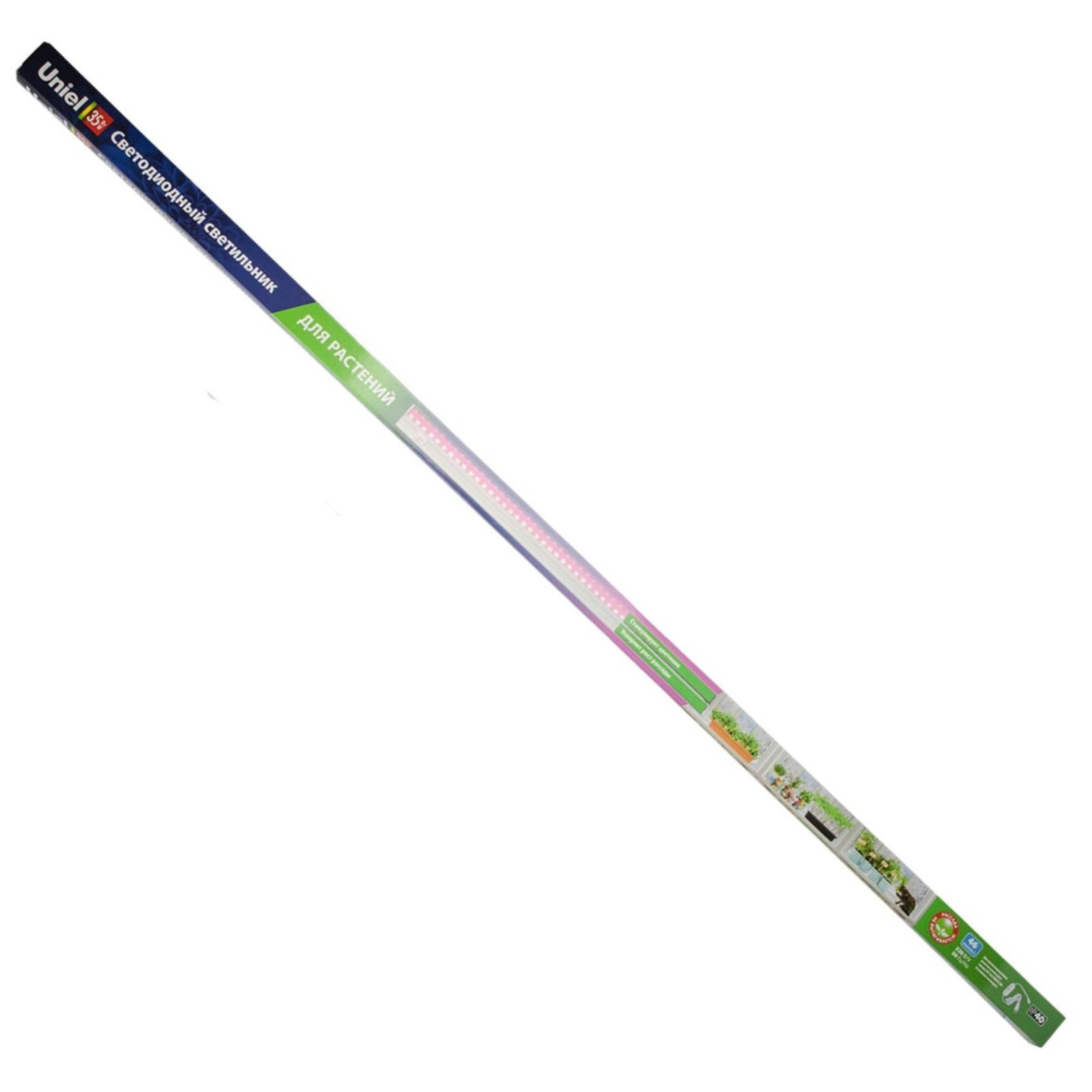 Фитосветильник для растений светодиодный, 35 Вт, 1150 мм, IP40, 220 В, с выключателем, мультиспектральный, Uniel, Китай