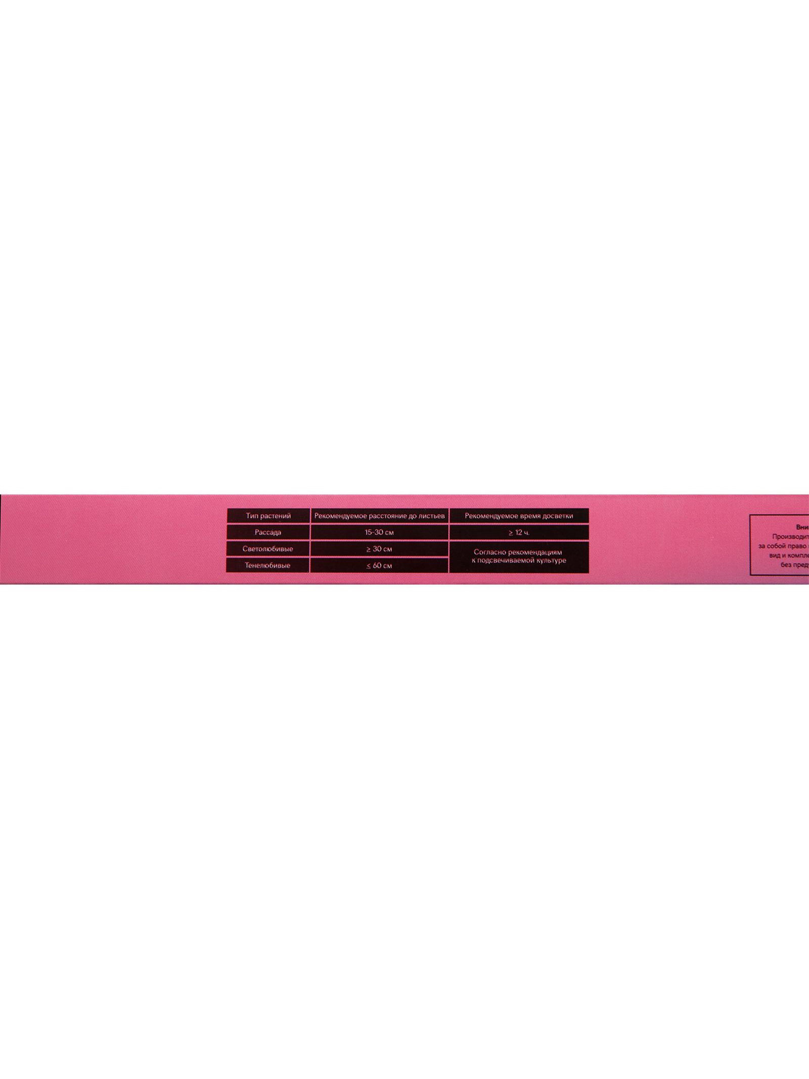 Размер упаковки: 3.8 x 2.5 x 106.5 см. Поддерживает USB: Нет Таймер: Нет Регулировка положения: Нет Регулировка яркости: Нет Материал корпуса: Пластик Цвет корпуса: Белый Тип питания: От сети 220 В Пульт управления: Нет Держатель в комплекте: Да Тип крепления: Крепёжные элементы tnved: 9405110000 Гарантийный срок, мес.: 12 Мощность, Вт: 14 Напряжение, В: 220 Цвет свечения: Розовый Фотосинтетический поток фотонов, мкмоль/с: 15 Степень защиты: IP20 Угол рассеивания, °: 120 Вид рассеивателя: Прозрачный Цвет: Белый Подставка в комплекте: Нет Длина, мм: 900 Спектр свечения: Мультиспектральный Создайте идеальные условия для роста ваших растений с помощью современного светодиодного фитосветильника. Этот компактный и энергоэффективный прибор станет вашим надёжным помощником в уходе за зелёными питомцами, обеспечивая их необходимым светом даже в условиях недостатка естественного освещения. Его продуманный дизайн и передовые технологии делают его идеальным выбором для любителей растений и профессиональных садоводов. Светильник мощностью 14 Вт и длиной 900 мм излучает мультиспектральный свет с преобладанием розового оттенка, который оптимально подходит для стимулирования фотосинтеза и активного роста растений. Прозрачный рассеиватель обеспечивает равномерное распределение света, создавая комфортные условия для зелени без резких бликов. Угол рассеивания 120° позволяет охватить большую площадь, что делает устройство универсальным для использования в домашних оранжереях, на подоконниках или в небольших теплицах.