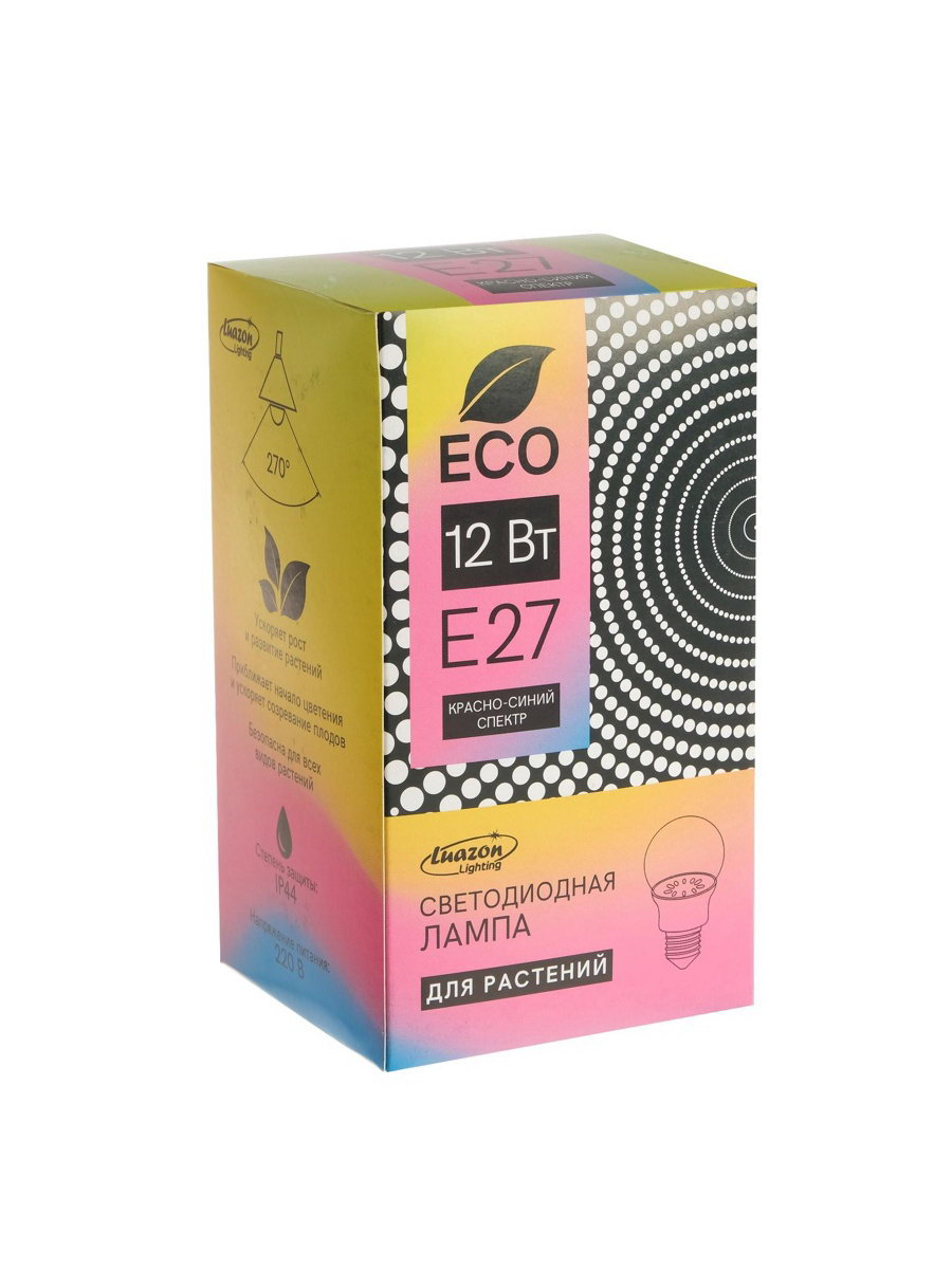 Фитолампа для растений светодиодная, А60, E27, 12 Вт, IP44, 220 В, 270°, мультиспектральная, 7x12x7 см., Luazon Lighting, Китай