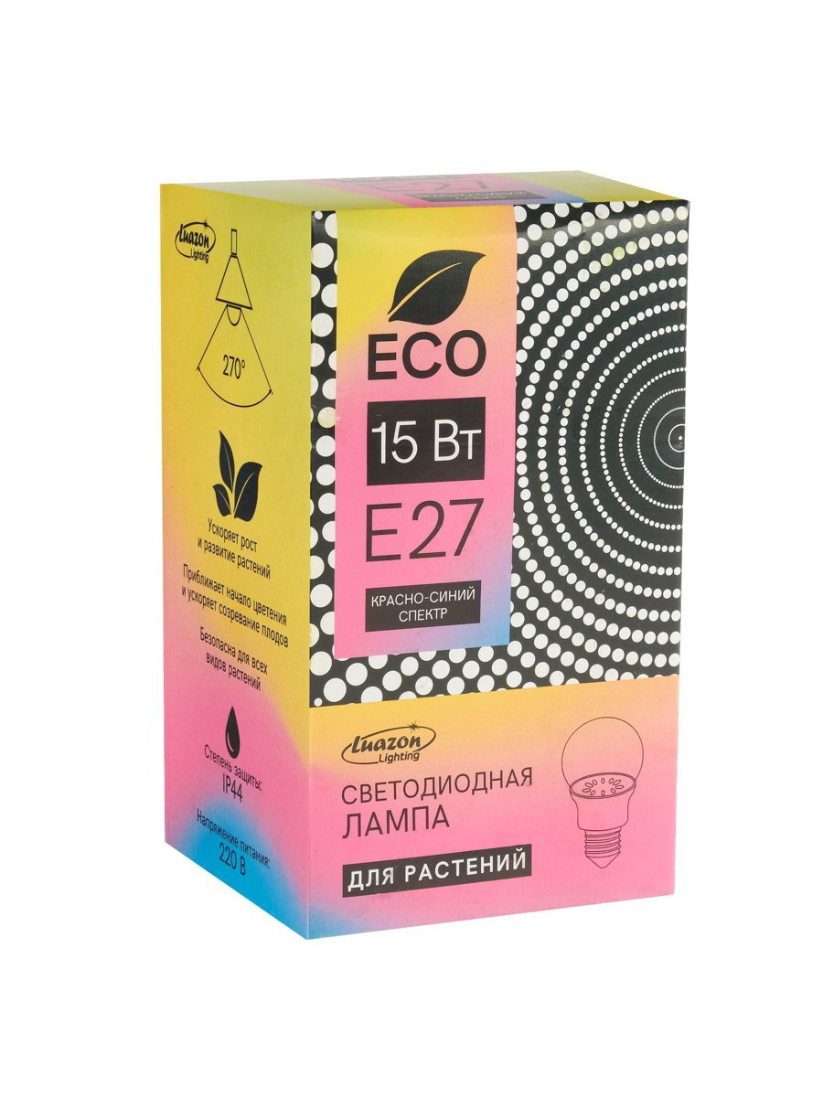 Фитолампа для растений светодиодная, А60, E27, 15 Вт, IP44, 220 В, 270°, мультиспектральная, 8x13x8 см., Luazon Lighting, Китай