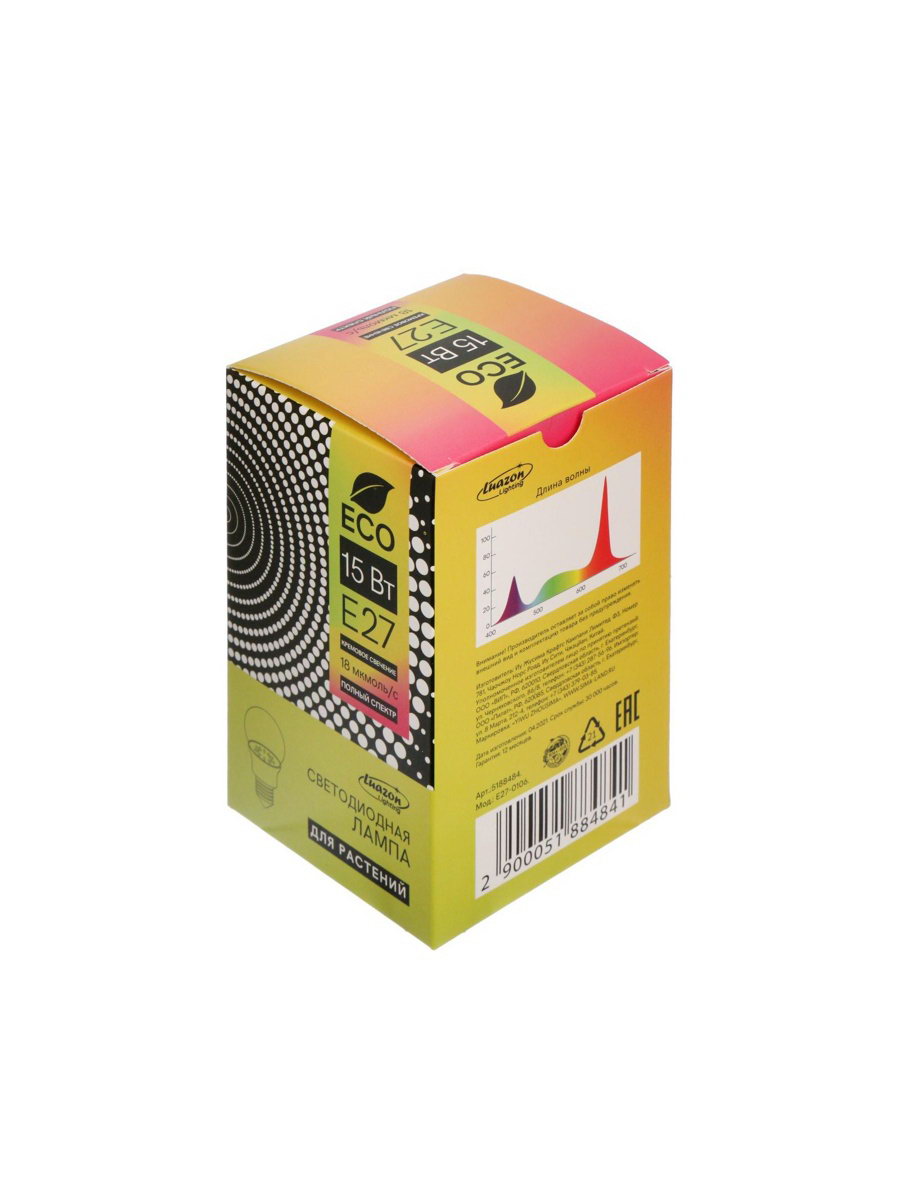 Фитолампа для растений светодиодная, А60, E27, 15 Вт, IP44, 220 В, 270°, полноспектральная, 8x13x8 см., Luazon Lighting, Китай