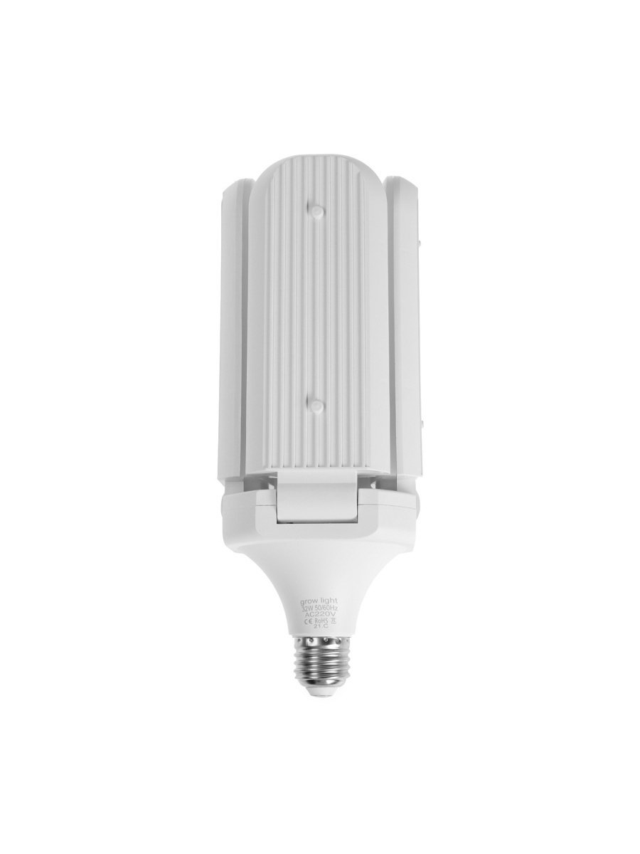 Фитолампа для растений, светодиодная, E27, 32 Вт, IP20, 220 В, 180°, четырёхлепестковая, складная, мультиспектральная, 9.5x9.5x24 см., Китай