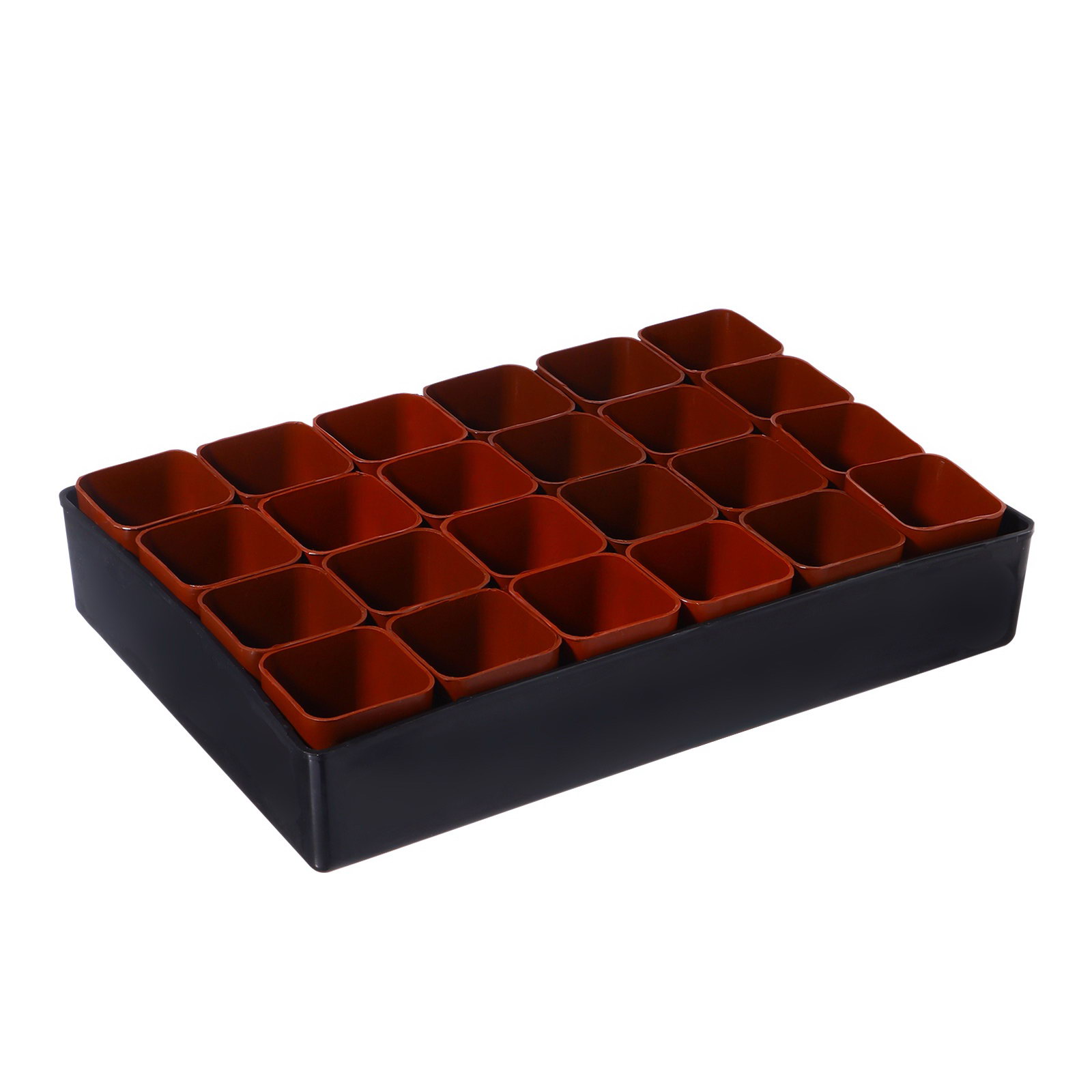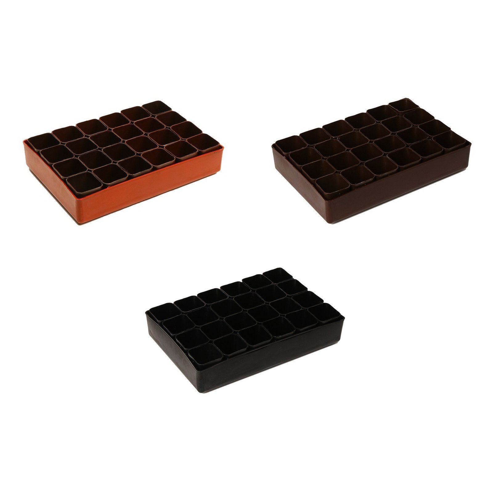 Размер упаковки: 6.5 x 20 x 30 см. Многоразовые: Да Количество ячеек: 24 Способ производства: Литьё Ширина верха горшка, см: 4.5 Высота горшка, см: 5.5 Ширина дна горшка, см: 4 Дренажные отверстия: Да Дно: Отверстия tnved: 3926909700 Цвет: МИКС Форма: Квадратная Вид: Набор Объём горшка, л: 0.07